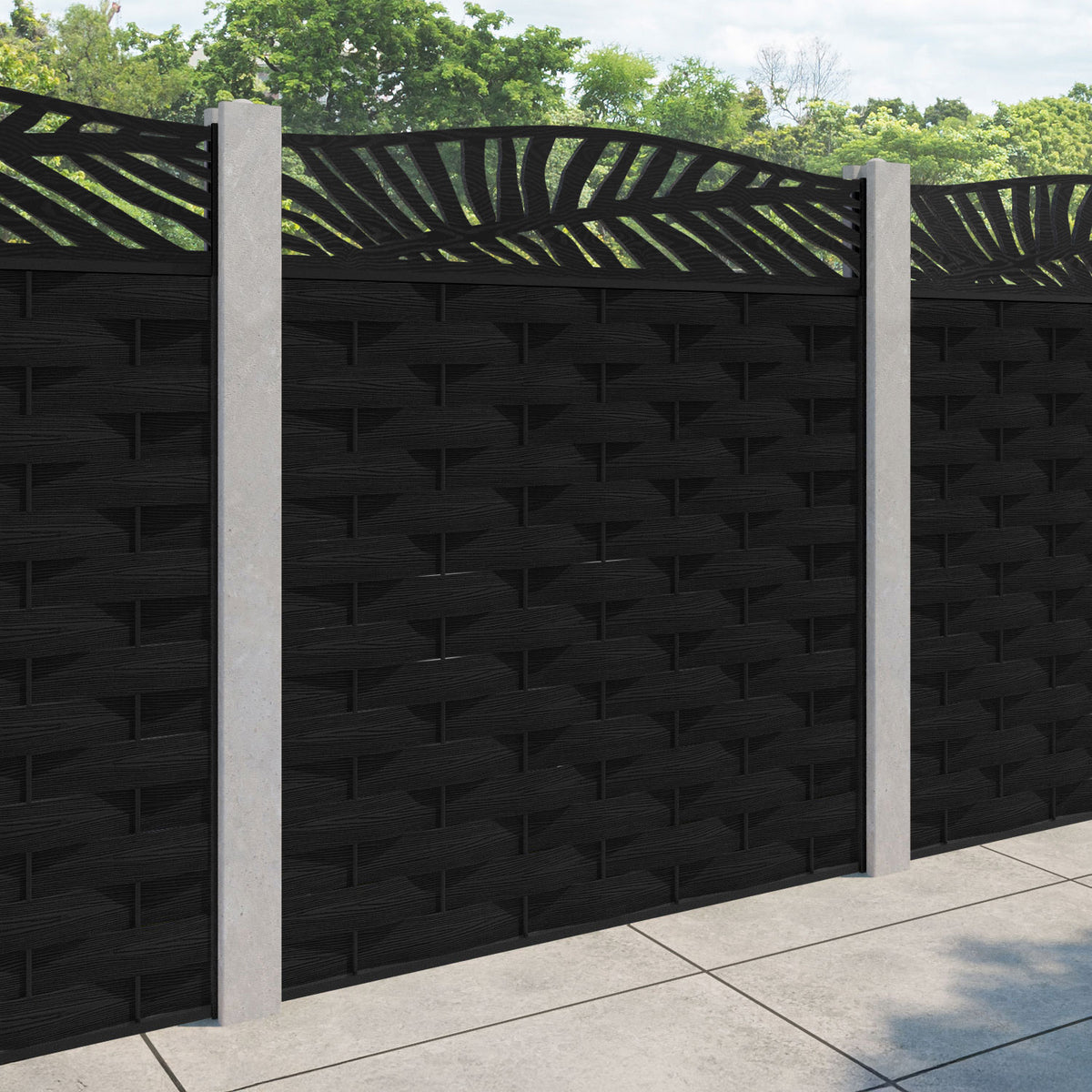 Ripple Palm Curved Top Fence Panel Black - for existing concrete posts