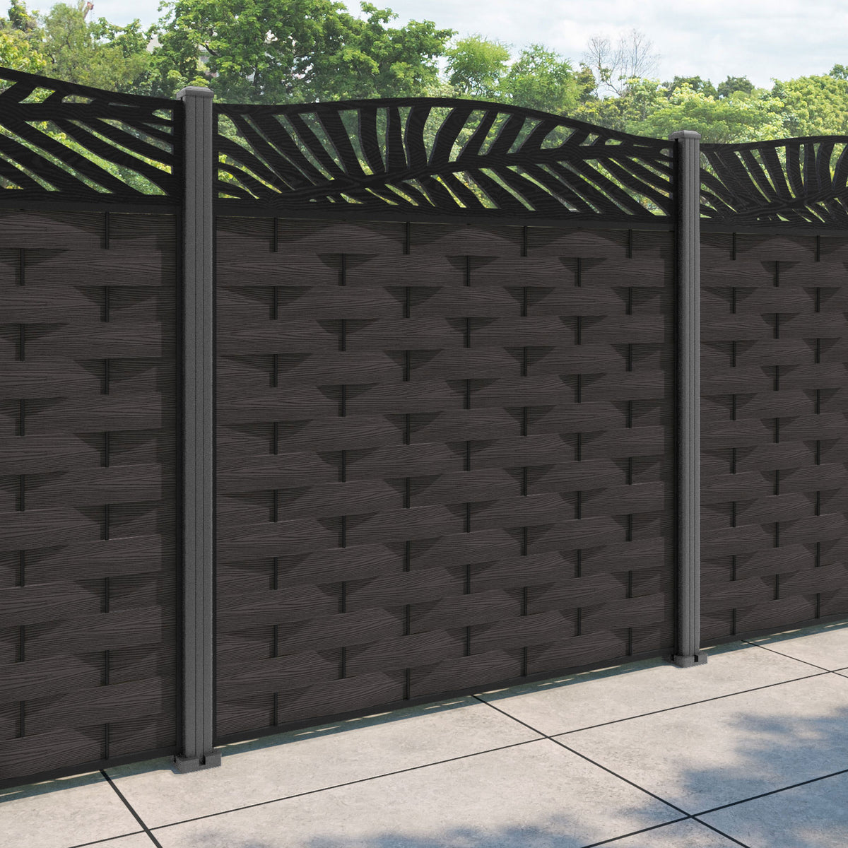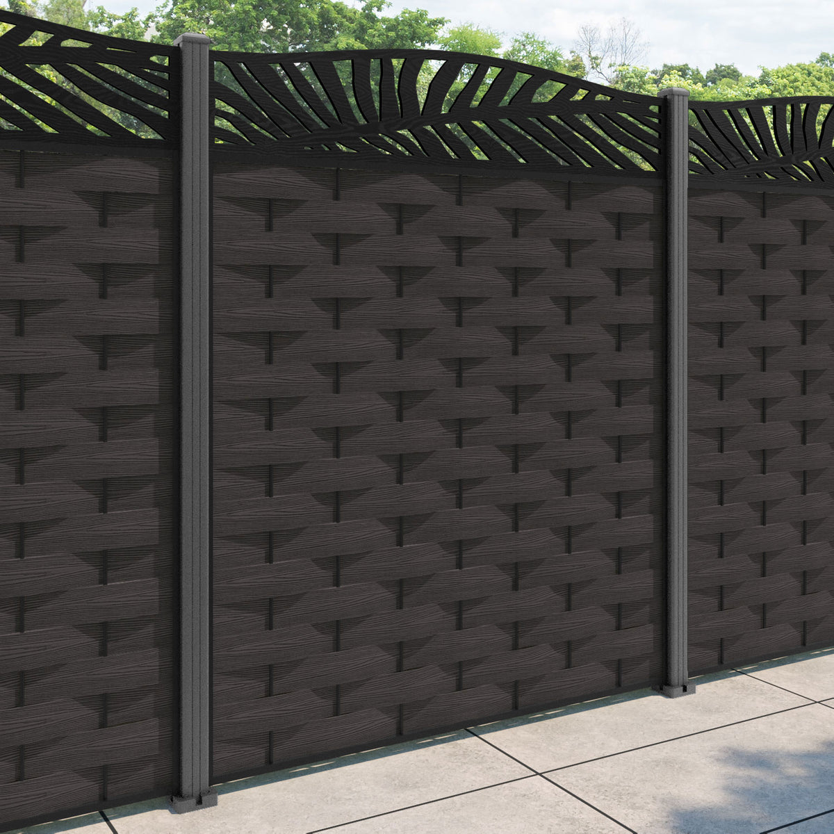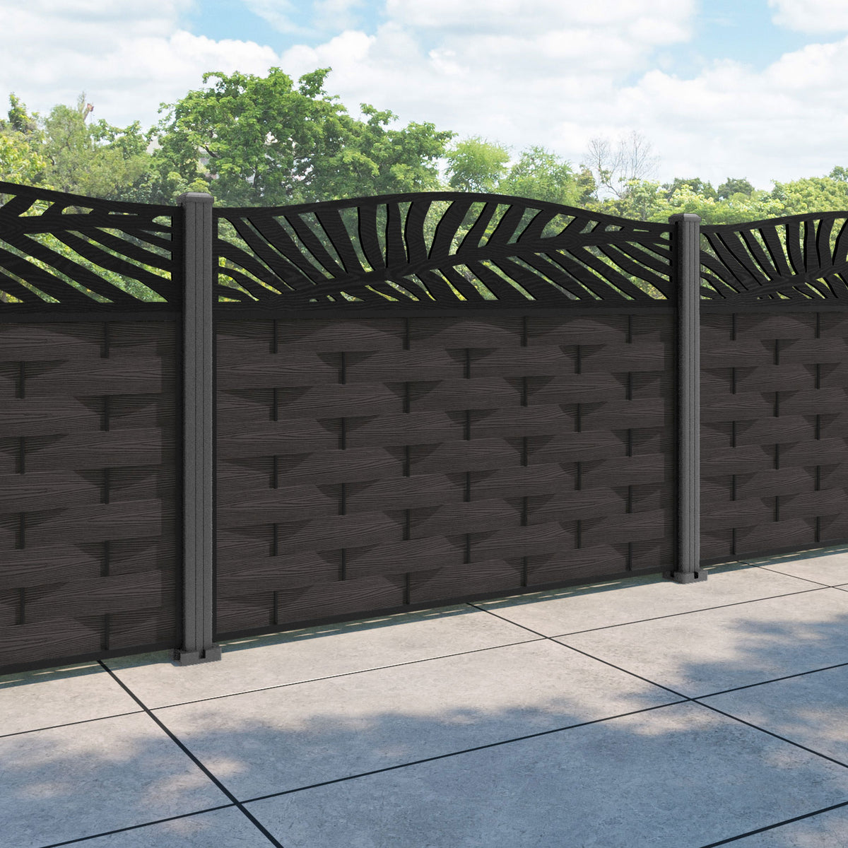 Ripple Palm Curved Top Fence Panel Dark Oak - with our aluminium posts