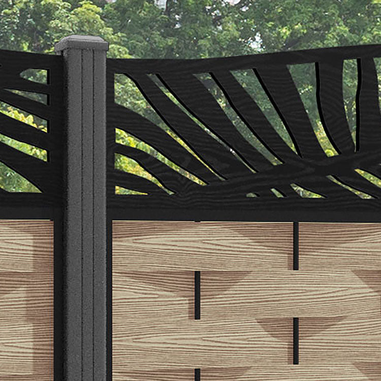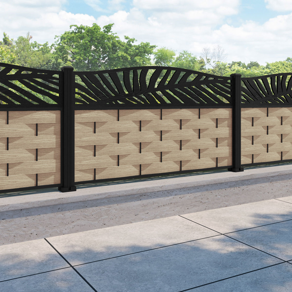 Ripple Palm Curved Top Fence Panel Light Oak - with our aluminium posts