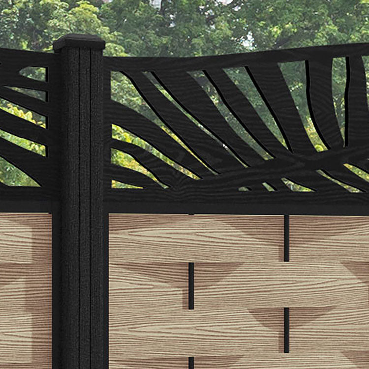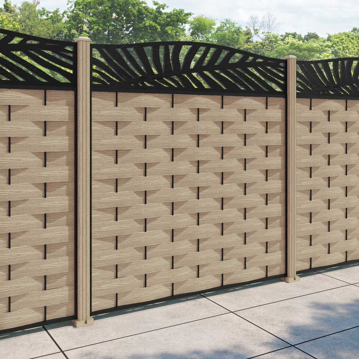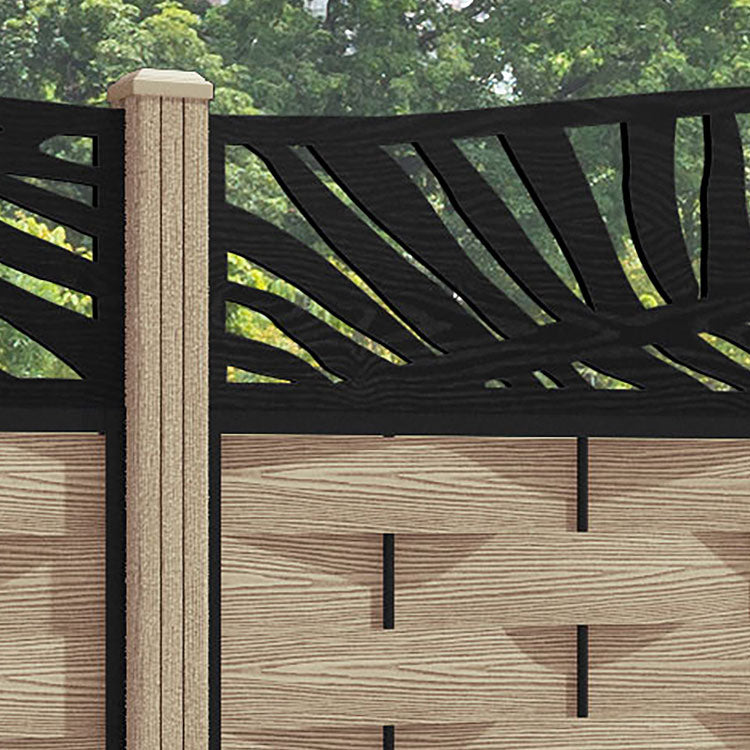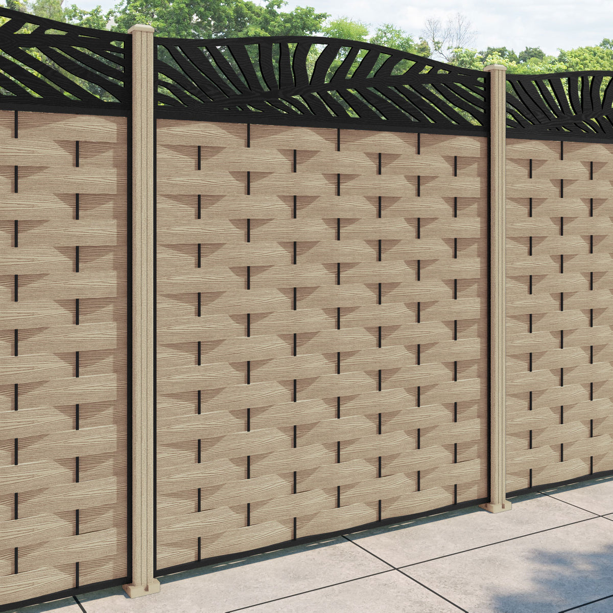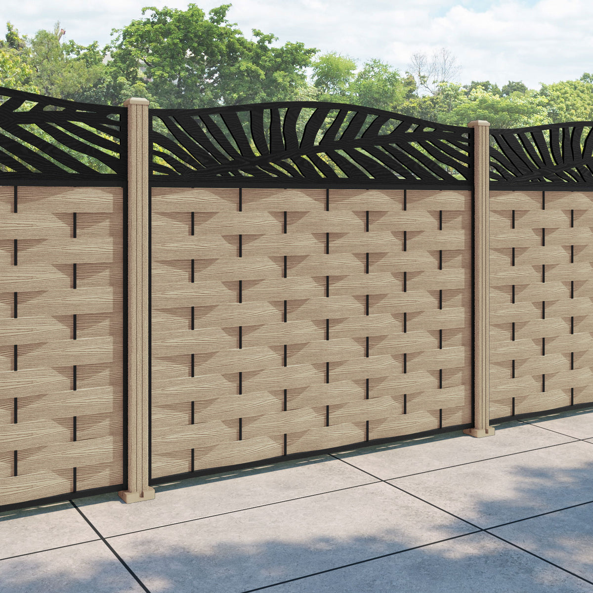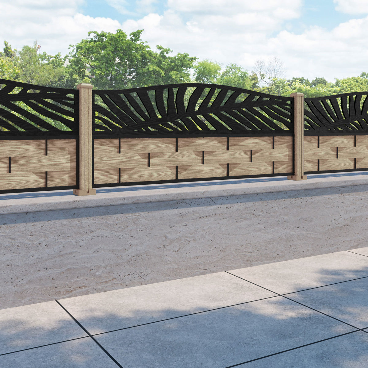 Ripple Palm Curved Top Fence Panel Light Oak - with our composite posts