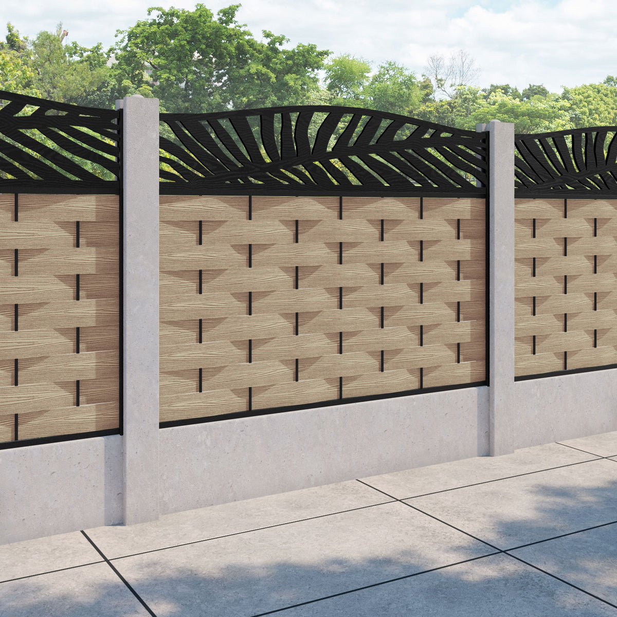 Ripple Palm Curved Top Fence Panel Light Oak - for existing concrete posts
