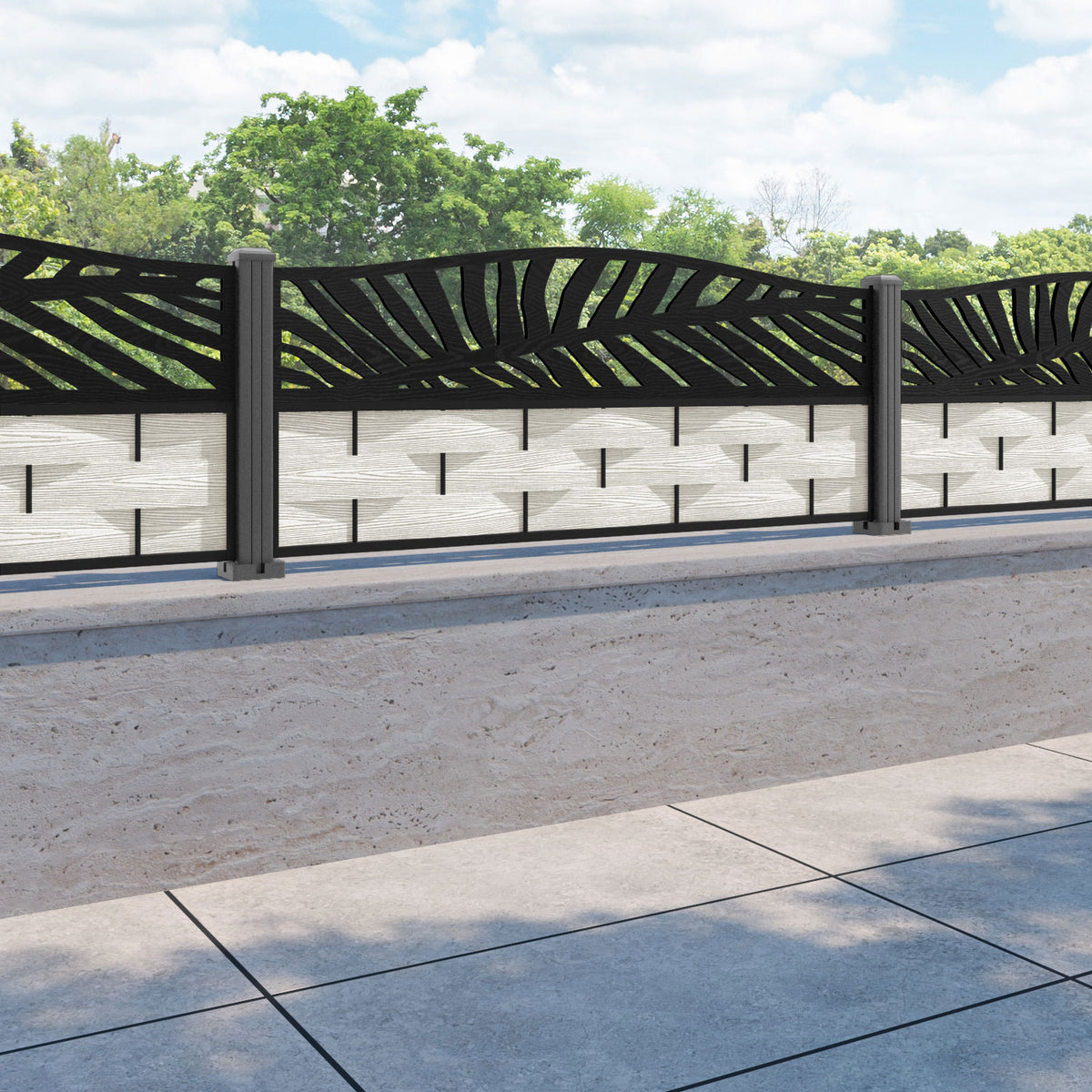 Ripple Palm Curved Top Fence Panel Light Stone - with our aluminium posts