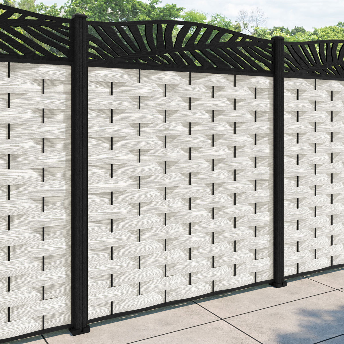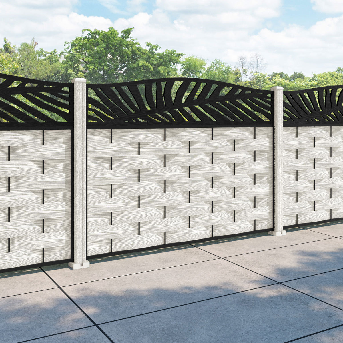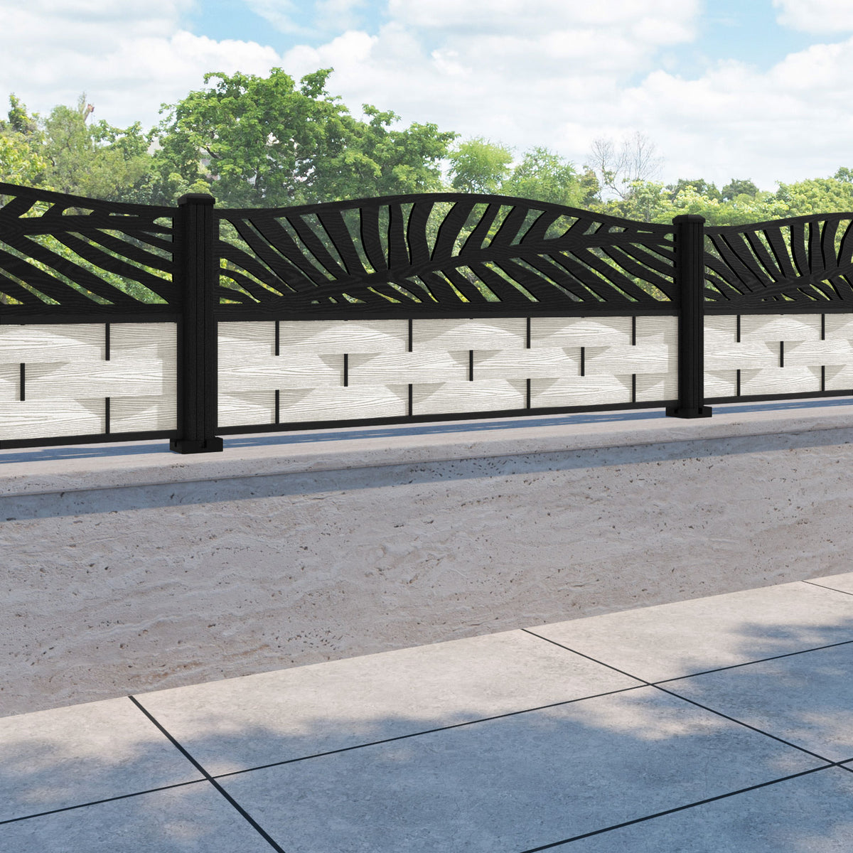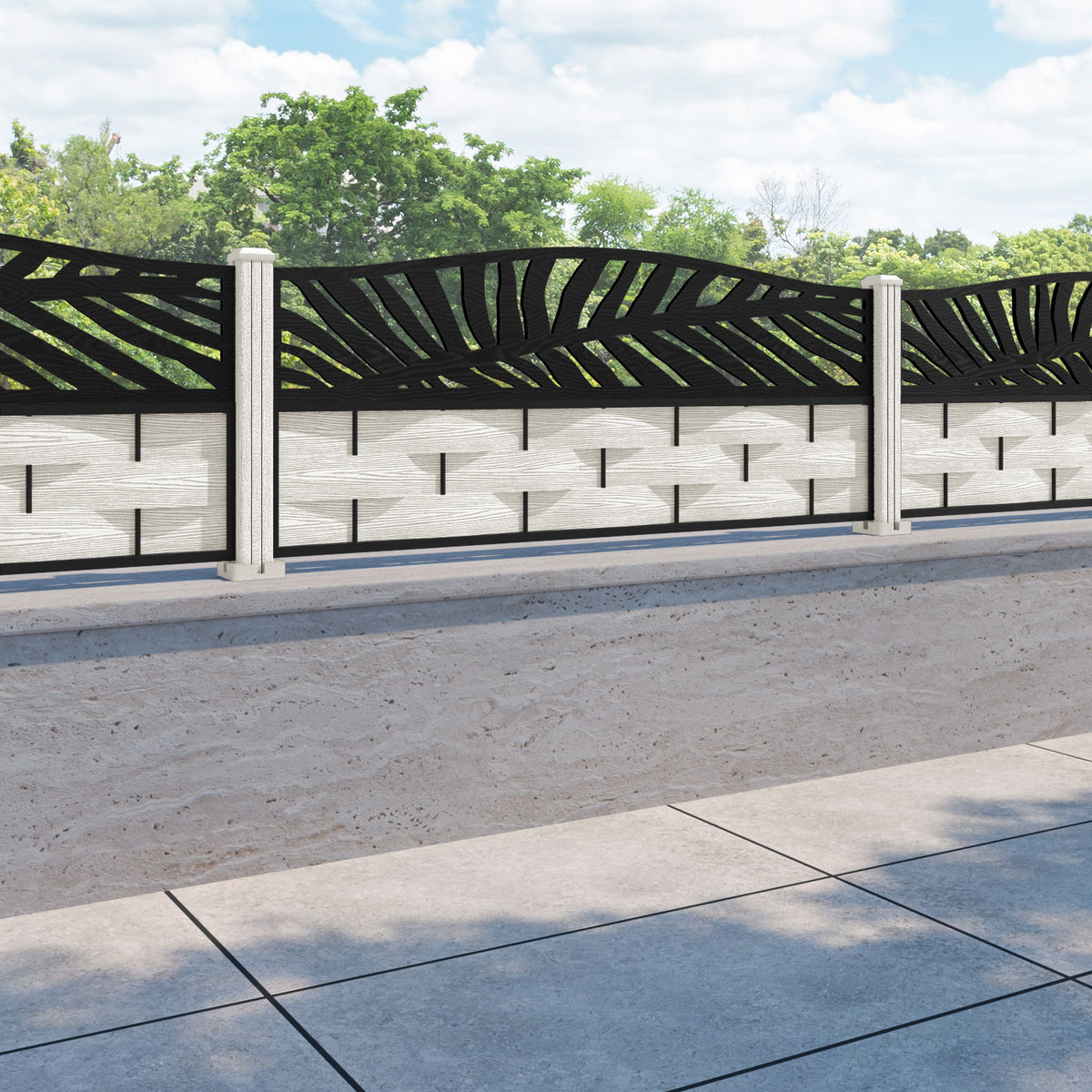 Ripple Palm Curved Top Fence Panel Light Stone - with our composite posts