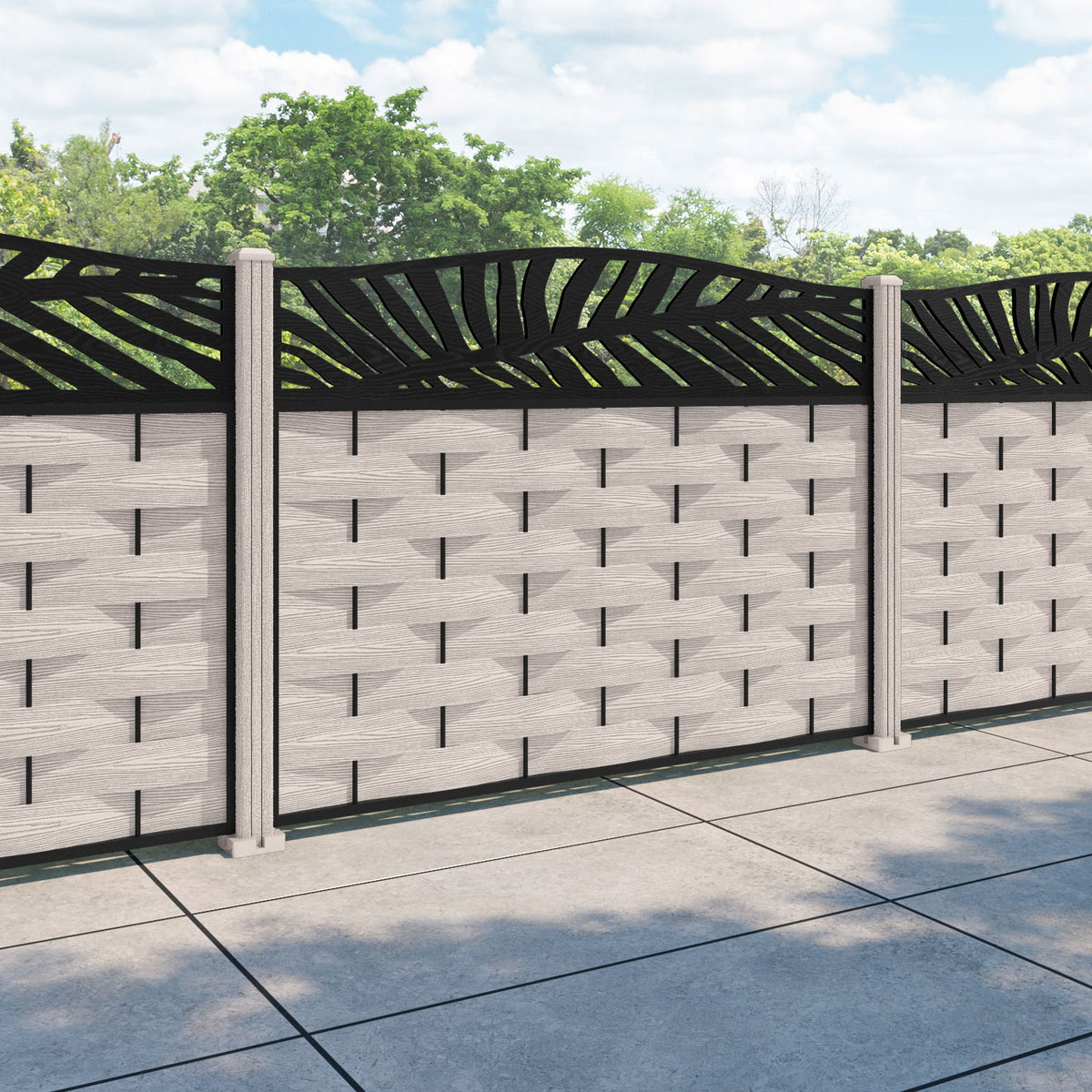 Ripple Palm Curved Top Fence Panel Mid Stone - with our composite posts