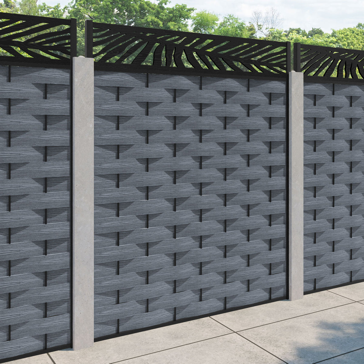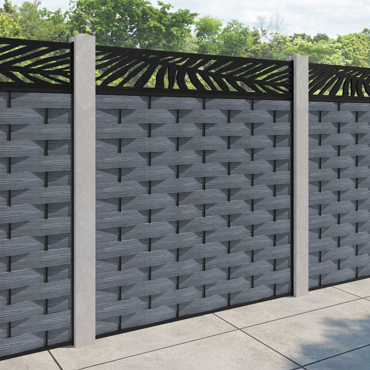 Ripple Palm Fence Panel Anthracite - for existing concrete posts