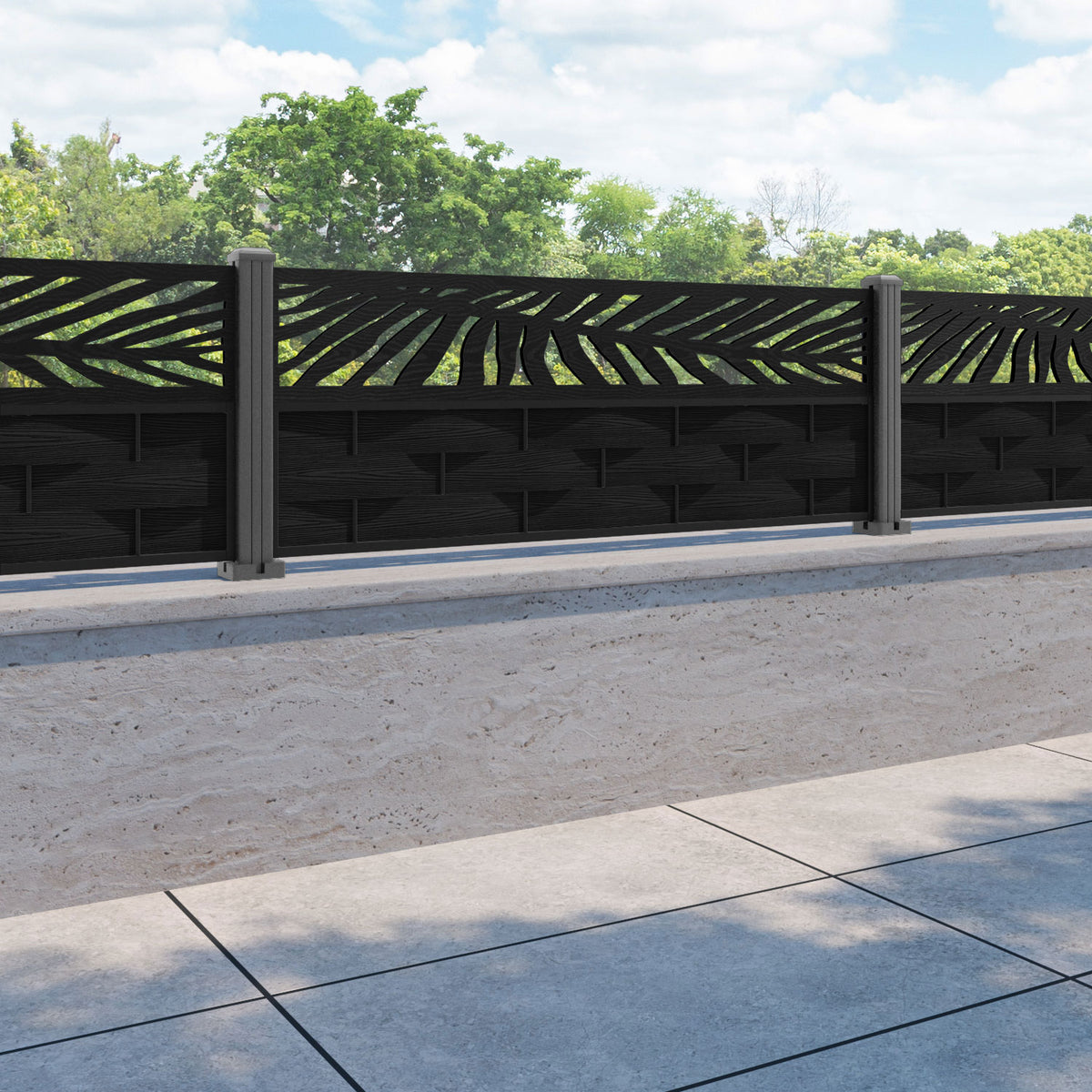 Ripple Palm Fence Panel Black - with our aluminium posts