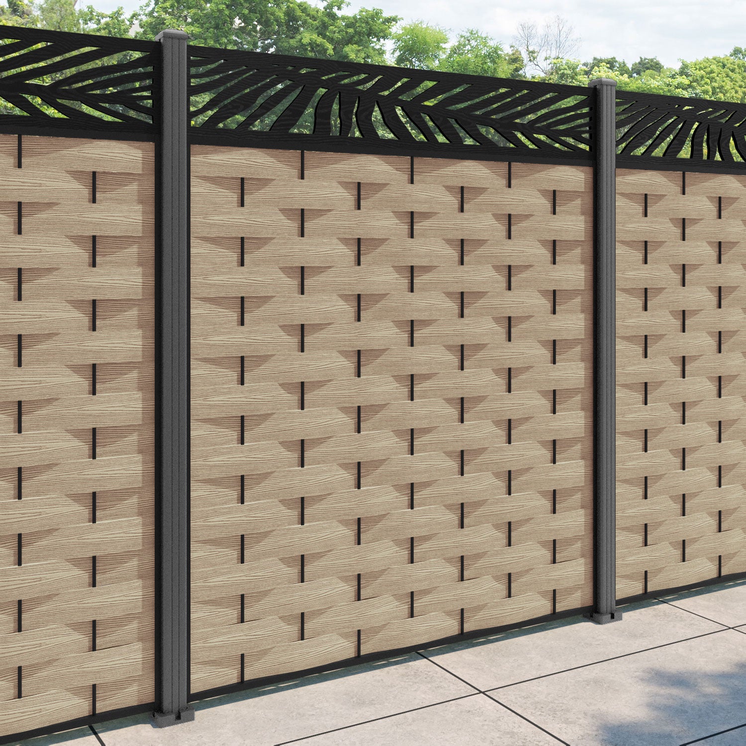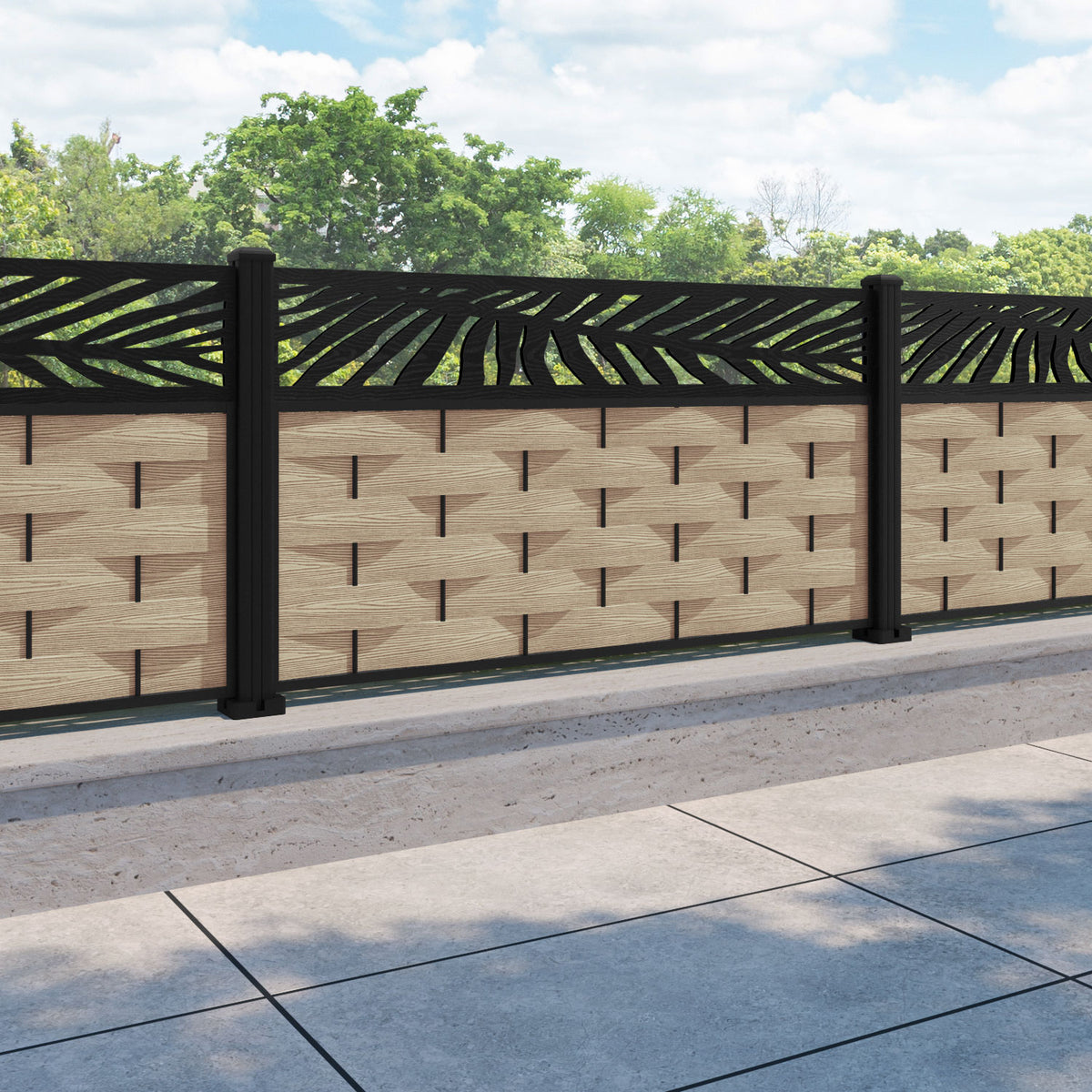 Ripple Palm Fence Panel Light Oak - with our aluminium posts