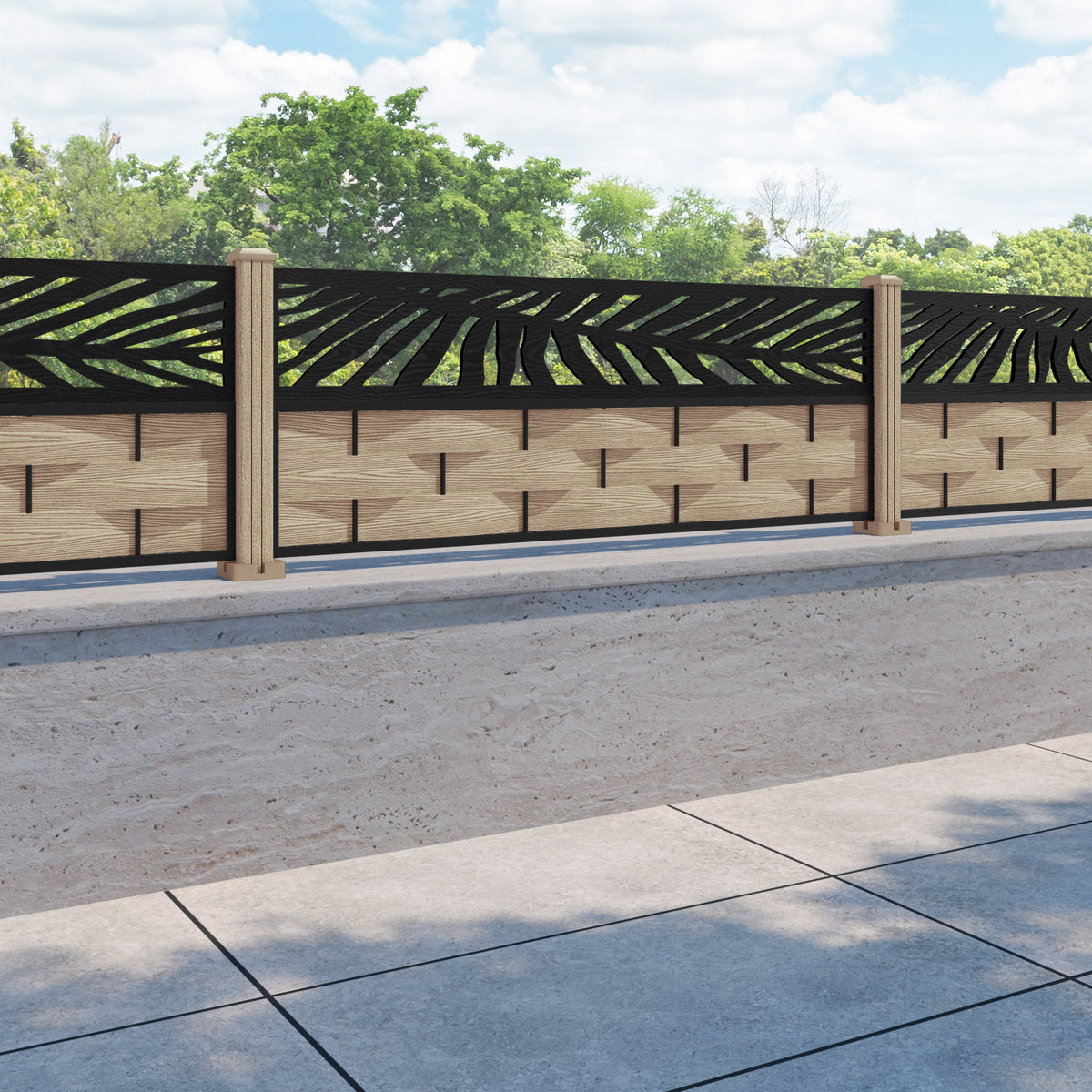 Ripple Palm Fence Panel Light Oak - with our composite posts