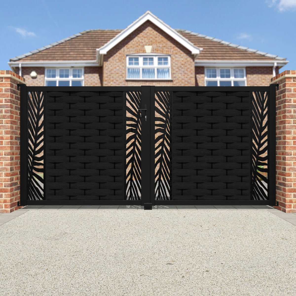 Ripple Palm Straight Top Driveway Gate Black - Middle & End Screen