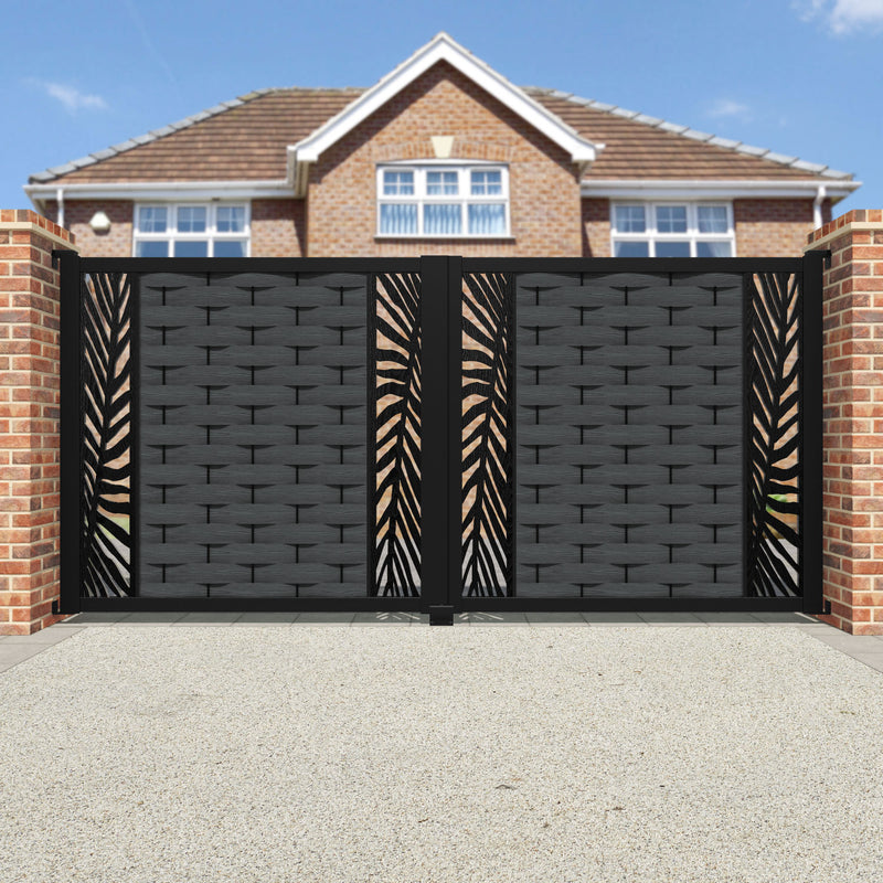 Ripple Palm Straight Top Driveway Gate Dark Grey - Middle & End Screen