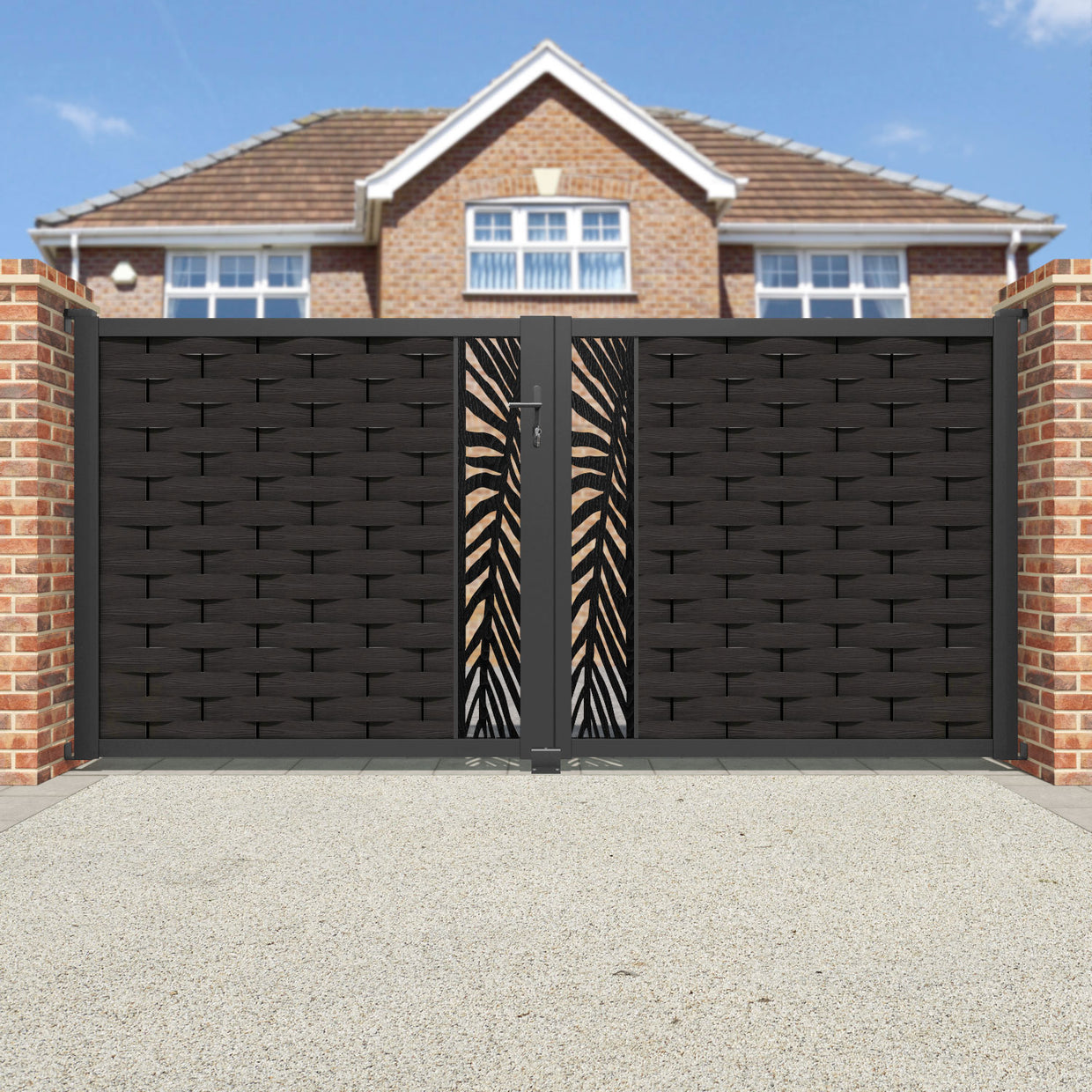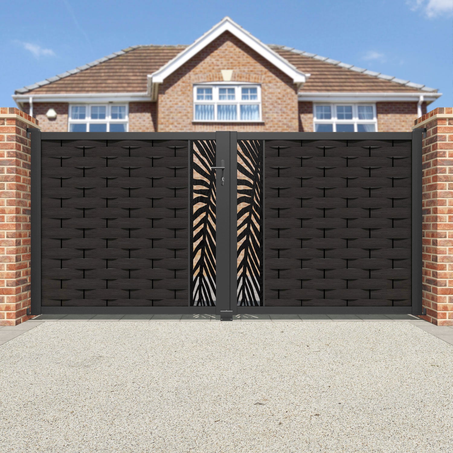 Ripple Palm Straight Top Driveway Gate Dark Oak - Middle Screen