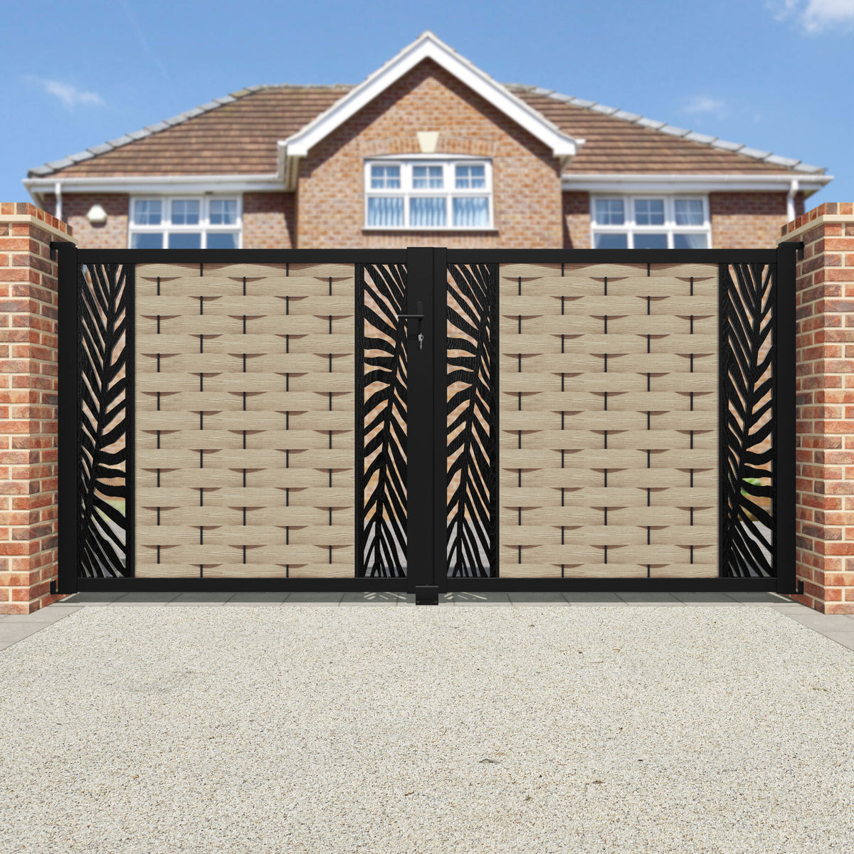 Ripple Palm Straight Top Driveway Gate Light Oak- Middle & End Screen