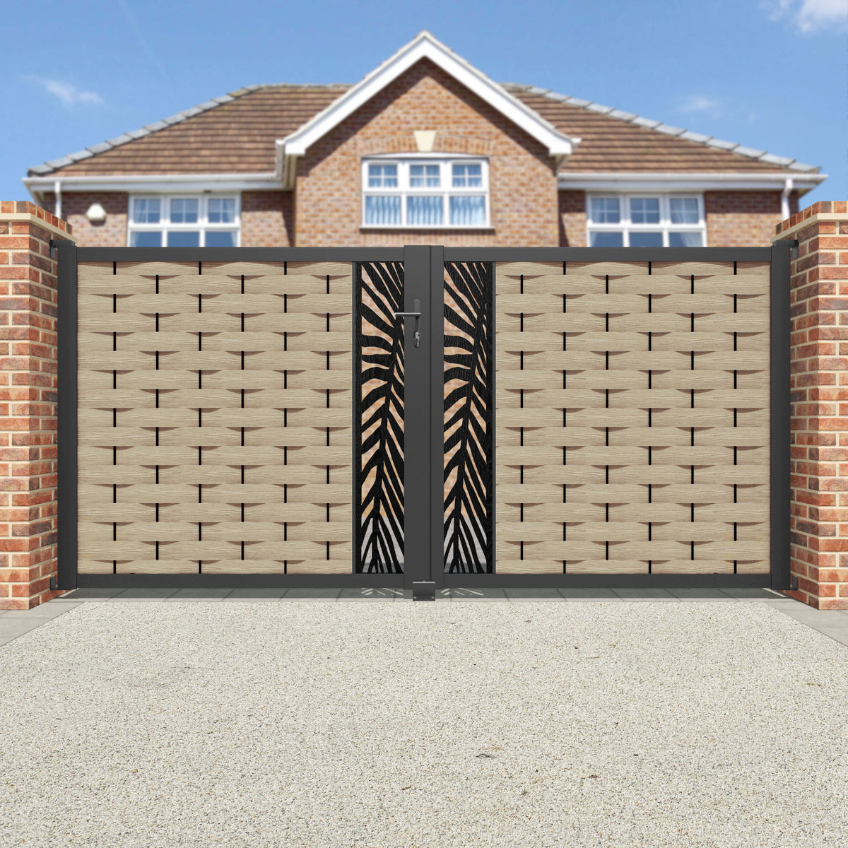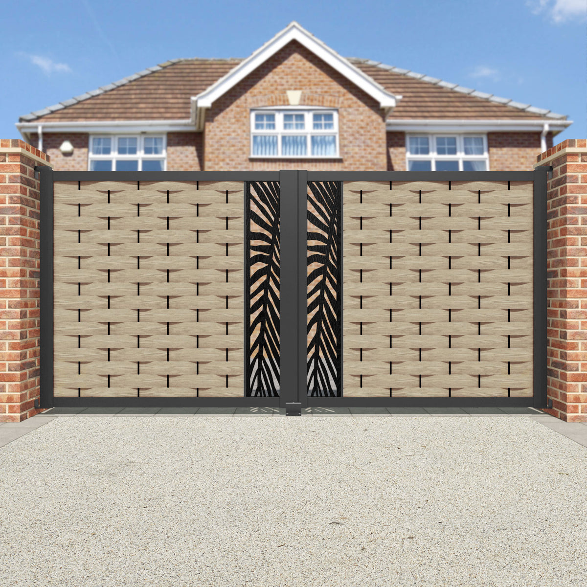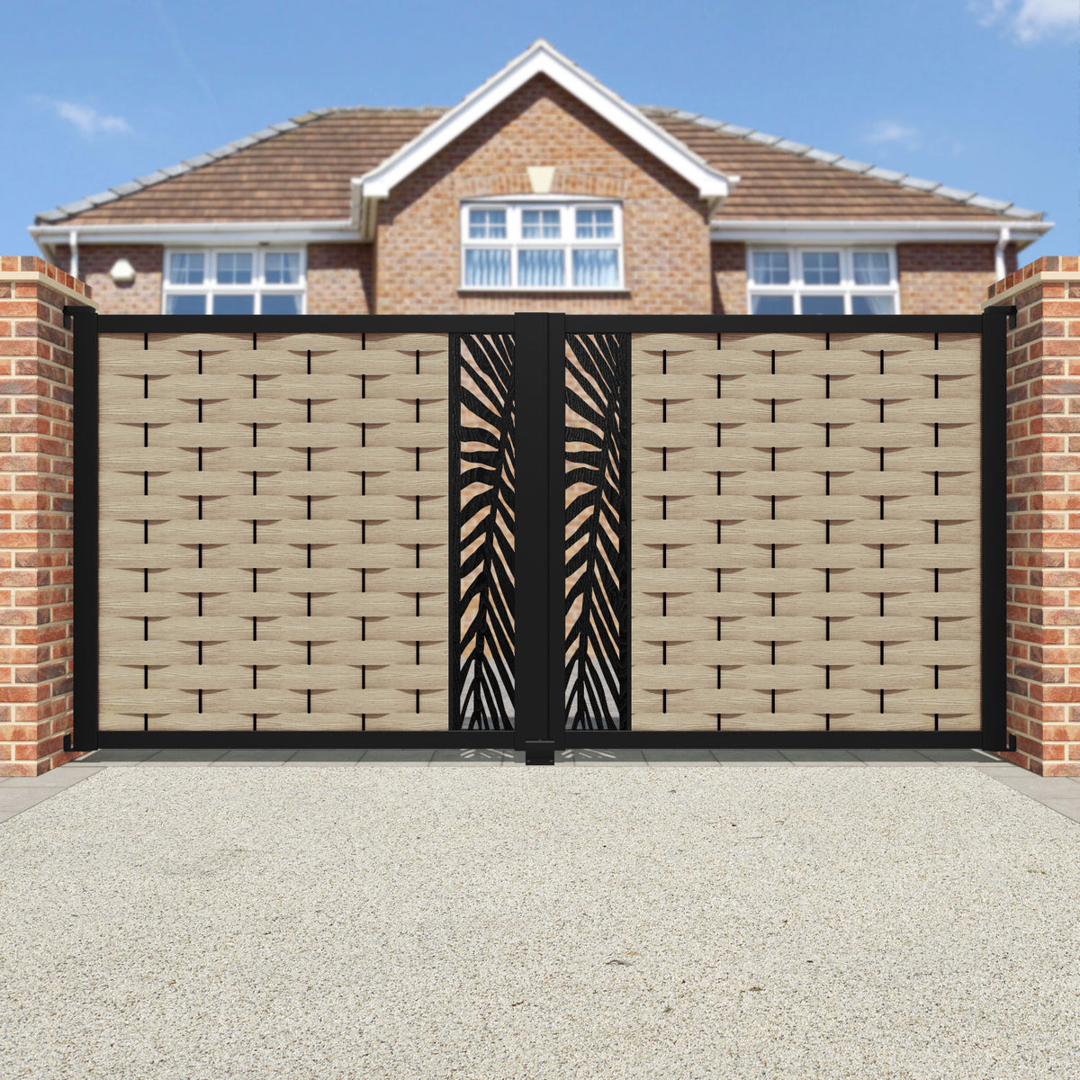 Ripple Palm Straight Top Driveway Gate Light Oak- Middle Screen