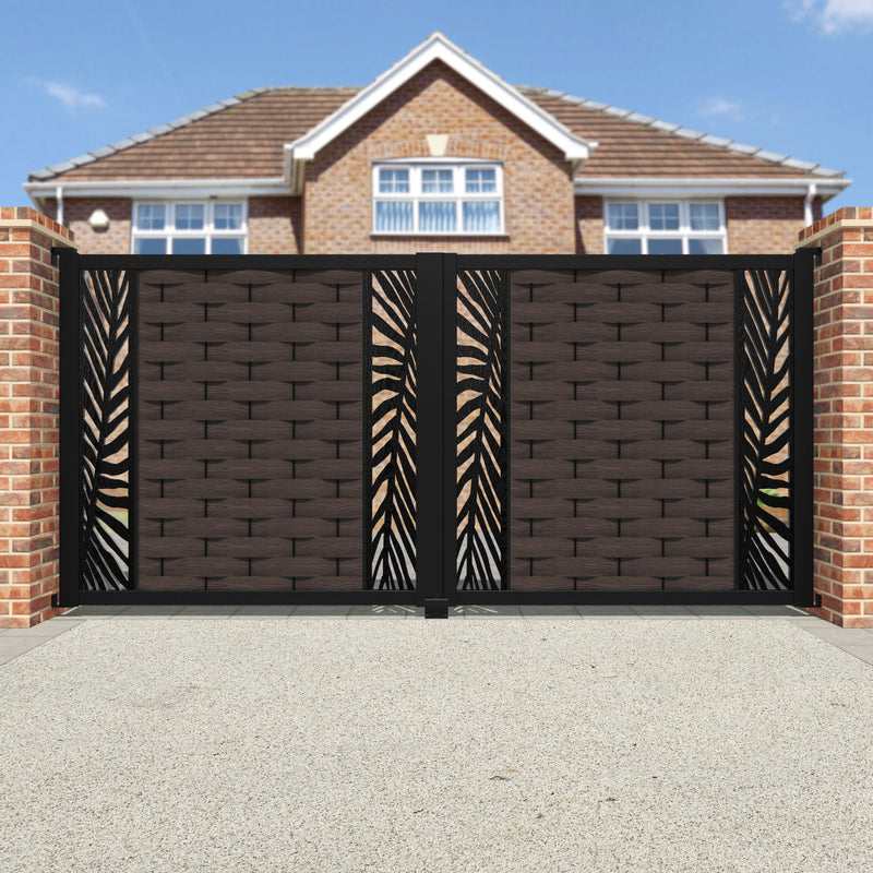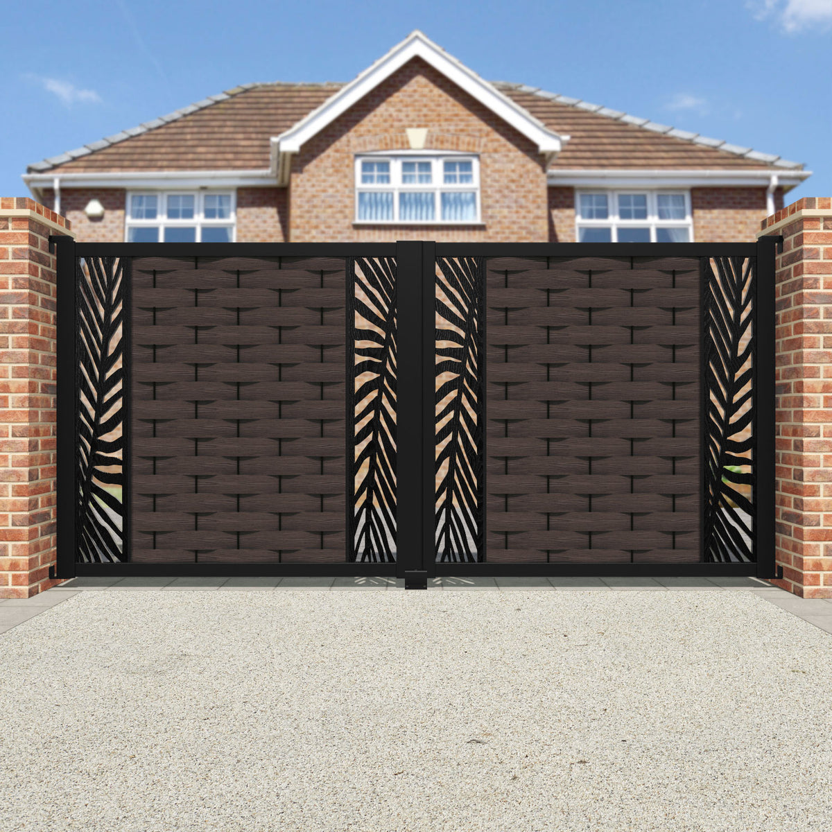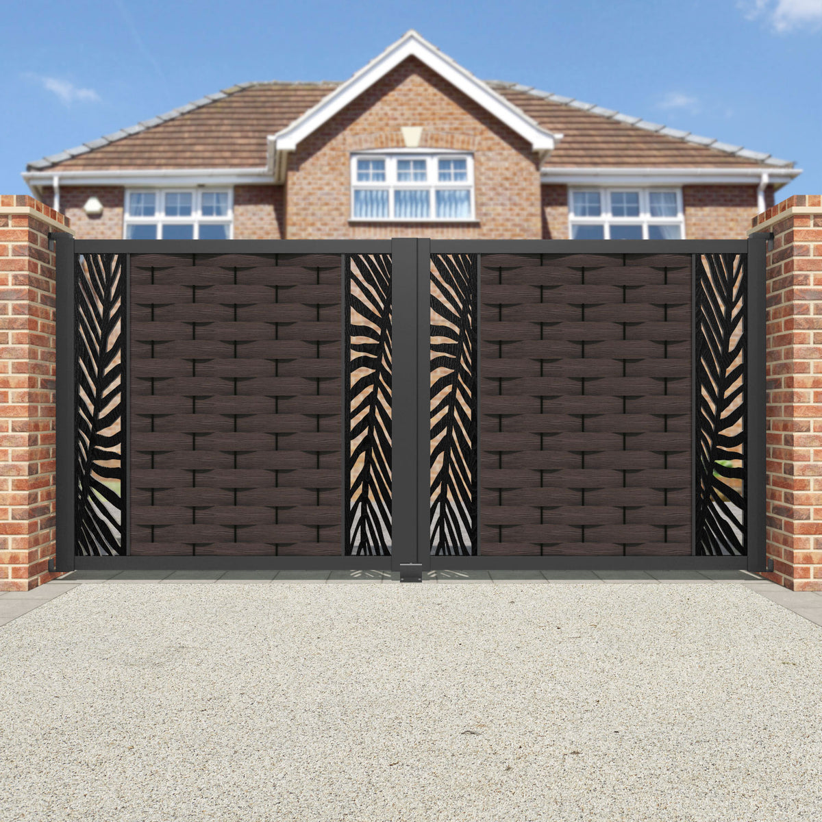 Ripple Palm Straight Top Driveway Gate Mid Brown - Middle & End Screen