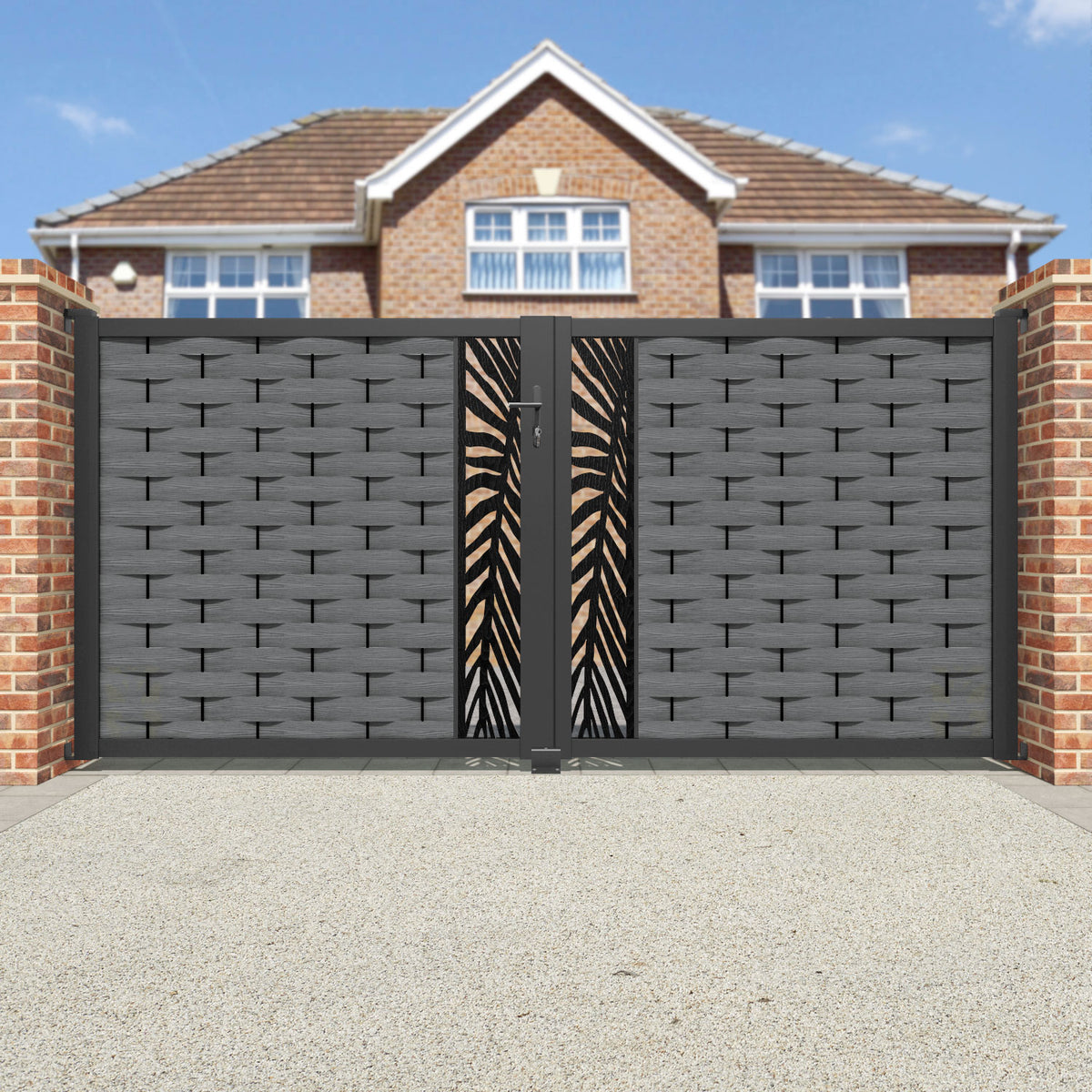 Ripple Palm Straight Top Driveway Gate Mid Grey - Middle Screen