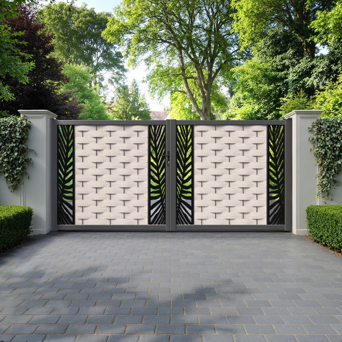 Ripple Palm Straight Top Driveway Gate Mid Stone - Middle & End Screen