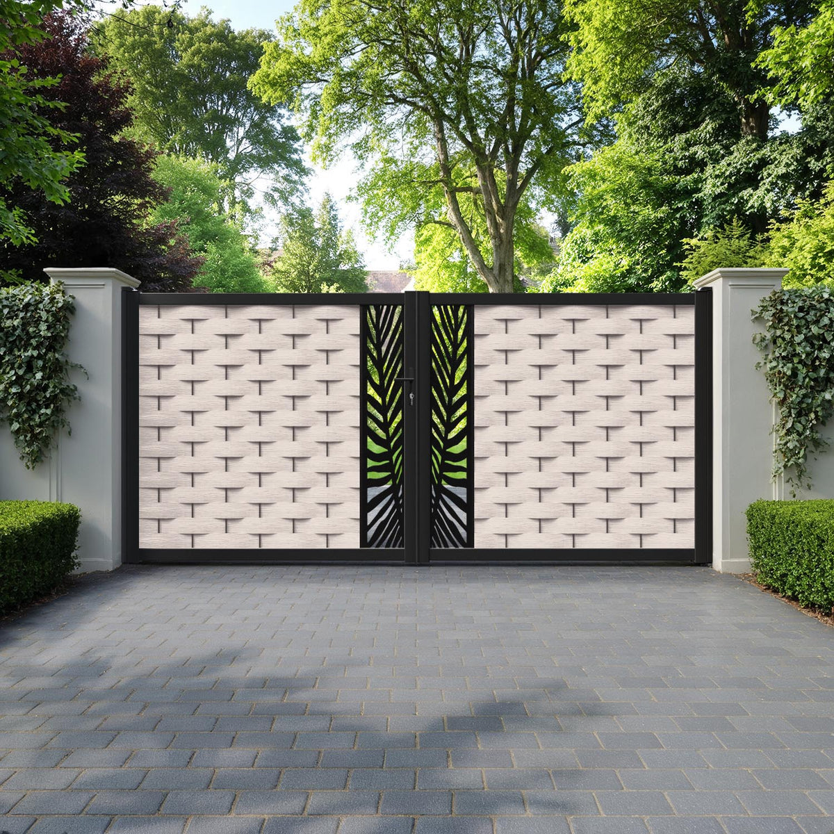 Ripple Palm Straight Top Driveway Gate Mid Stone - Middle Screen