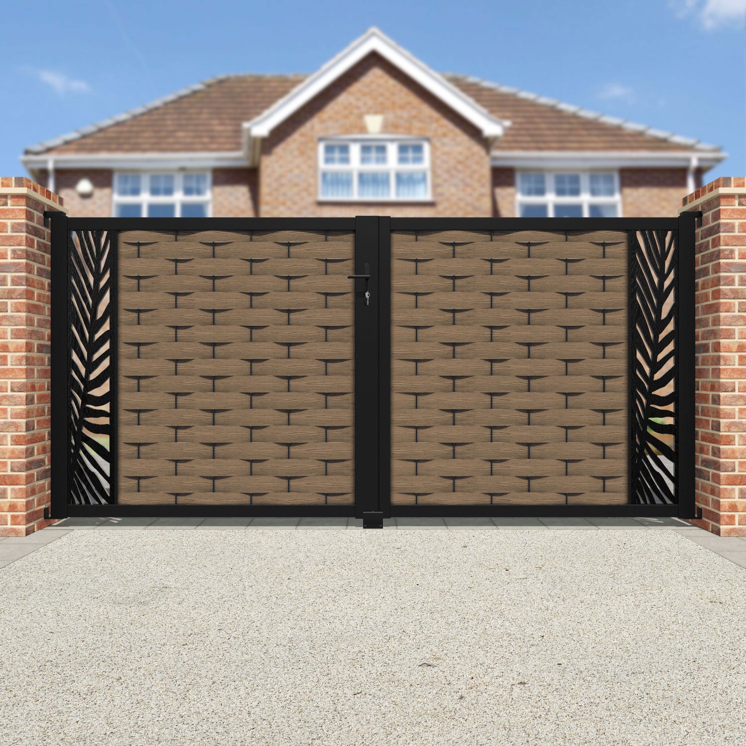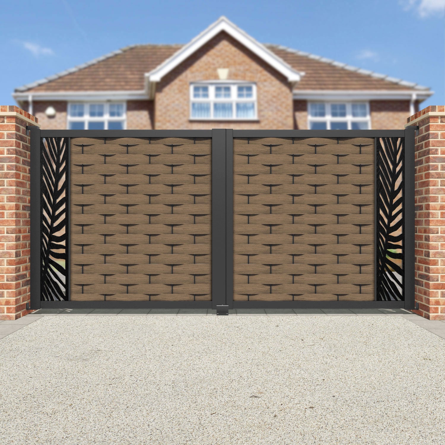 Ripple Palm Straight Top Driveway Gate Teak - End Screen