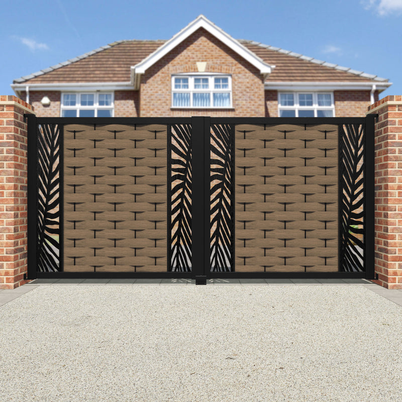 Ripple Palm Straight Top Driveway Gate Teak - Middle & End Screen