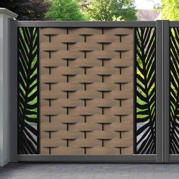 Ripple Palm Straight Top Driveway Gate Teak - Middle & End Screen
