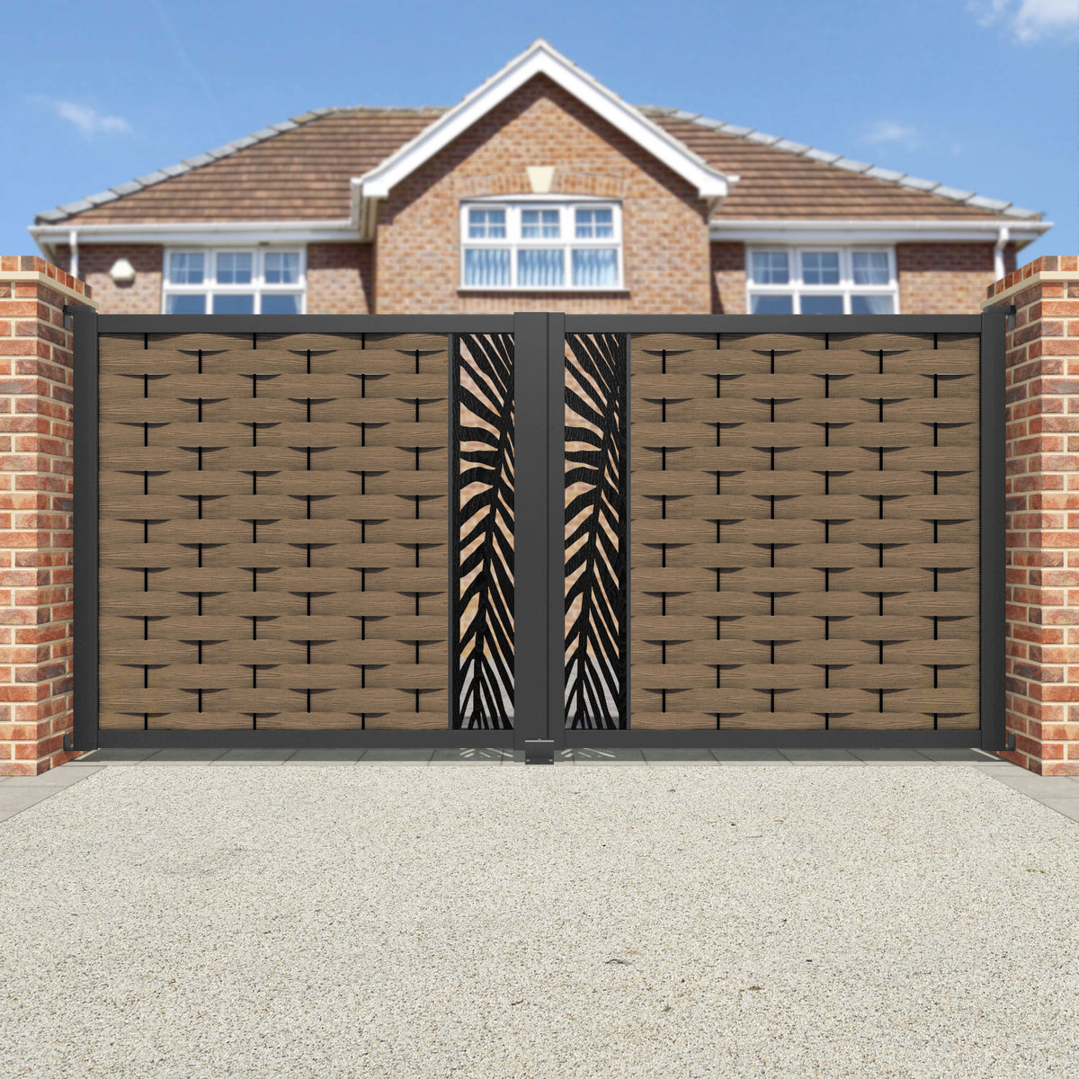 Ripple Palm Straight Top Driveway Gate Teak - Middle Screen