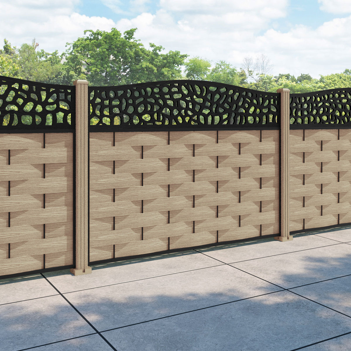 Ripple Pebble Curved Top Fence Panel Light Oak - with our composite posts