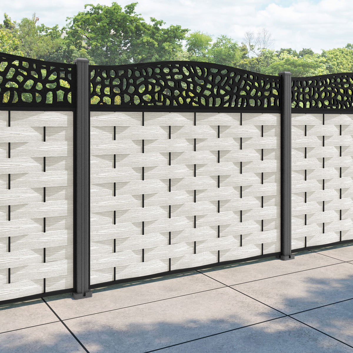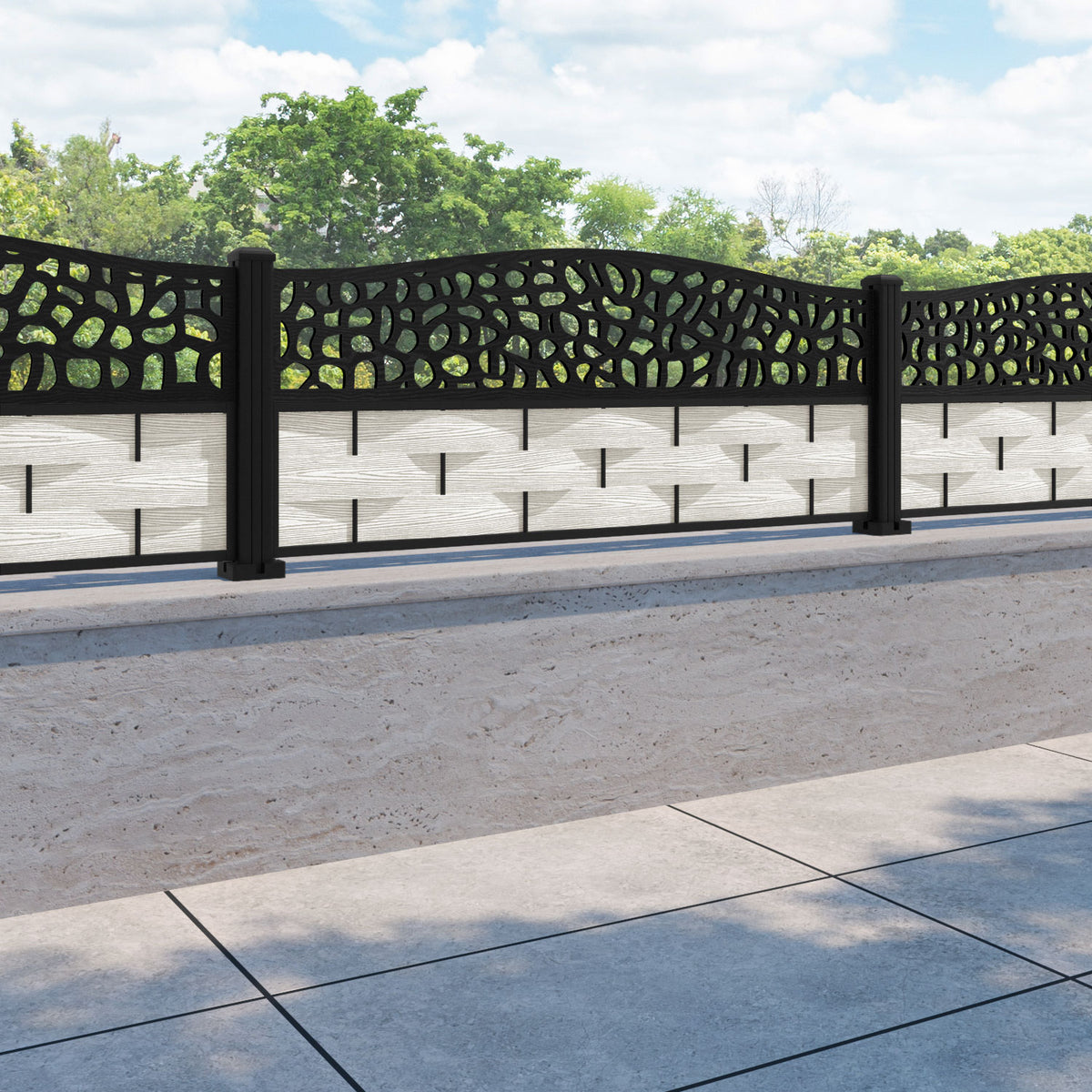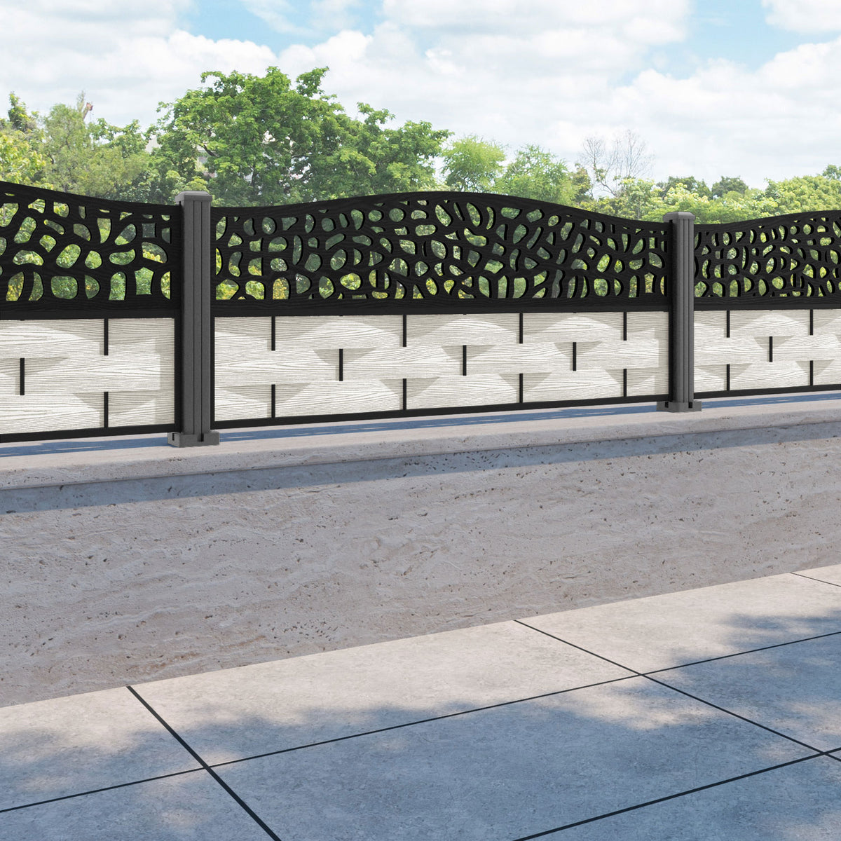 Ripple Pebble Curved Top Fence Panel Light Stone - with our aluminium posts