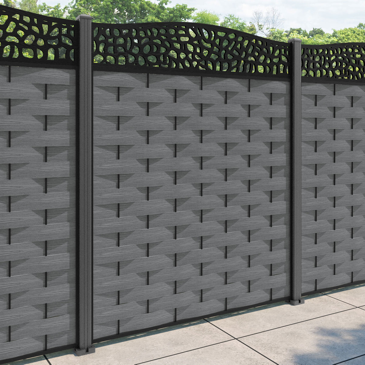 Ripple Pebble Curved Top Fence Panel Mid Grey - with our aluminium posts