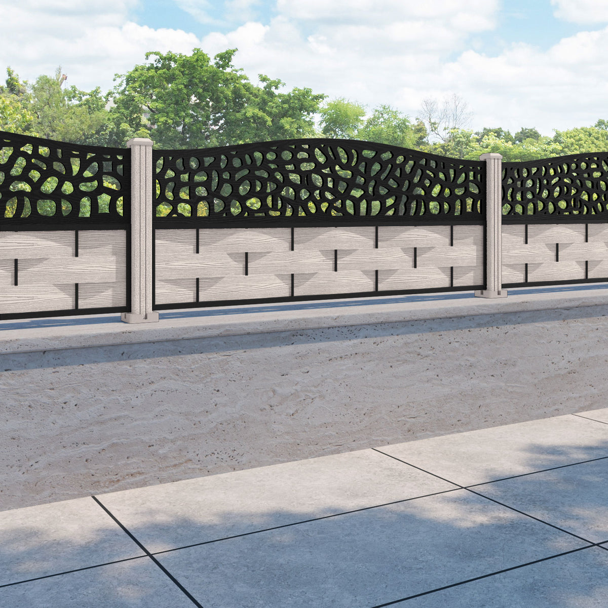 Ripple Pebble Curved Top Fence Panel Mid Stone - with our composite posts