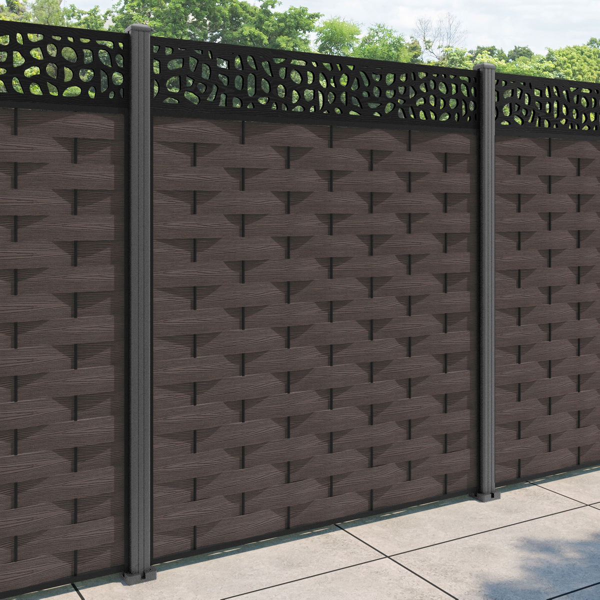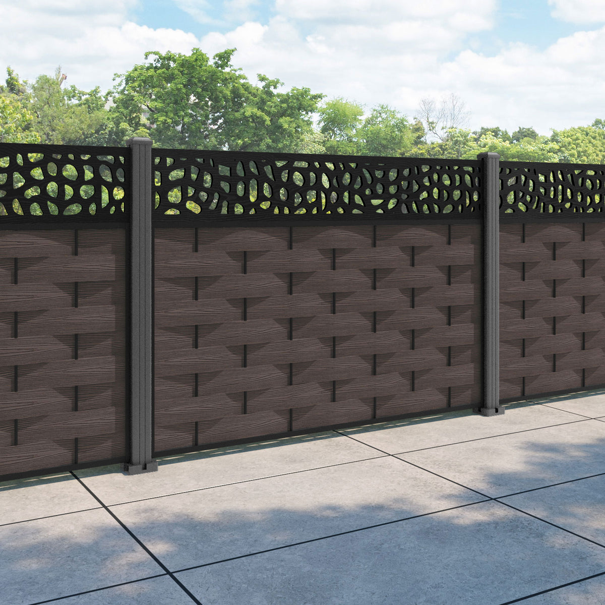 Ripple Pebble Fence Panel Mid Brown - with our aluminium posts
