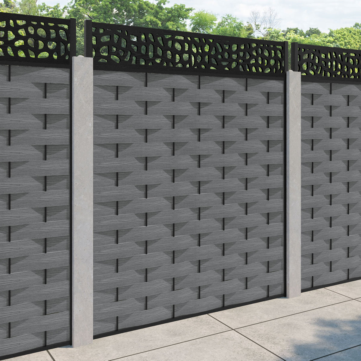 Ripple Pebble Fence Panel Mid Grey - for existing concrete posts