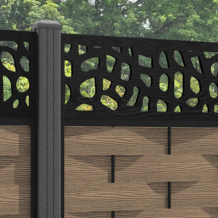Ripple Pebble Fence Panel Teak - with our aluminium posts