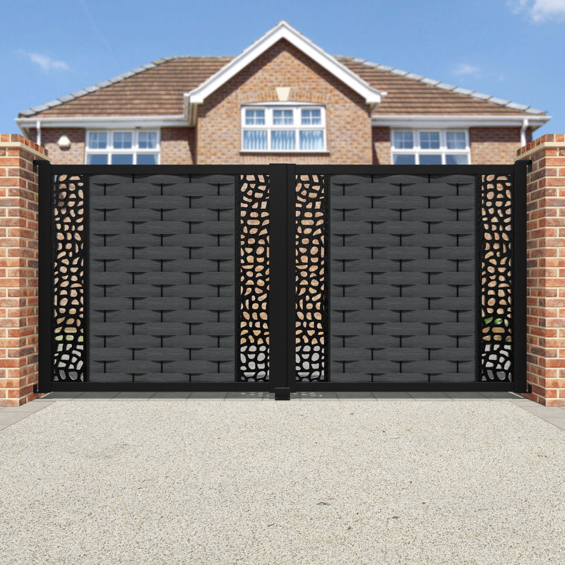 Ripple Pebble Straight Top Driveway Gate Dark Grey - Middle & End Screen