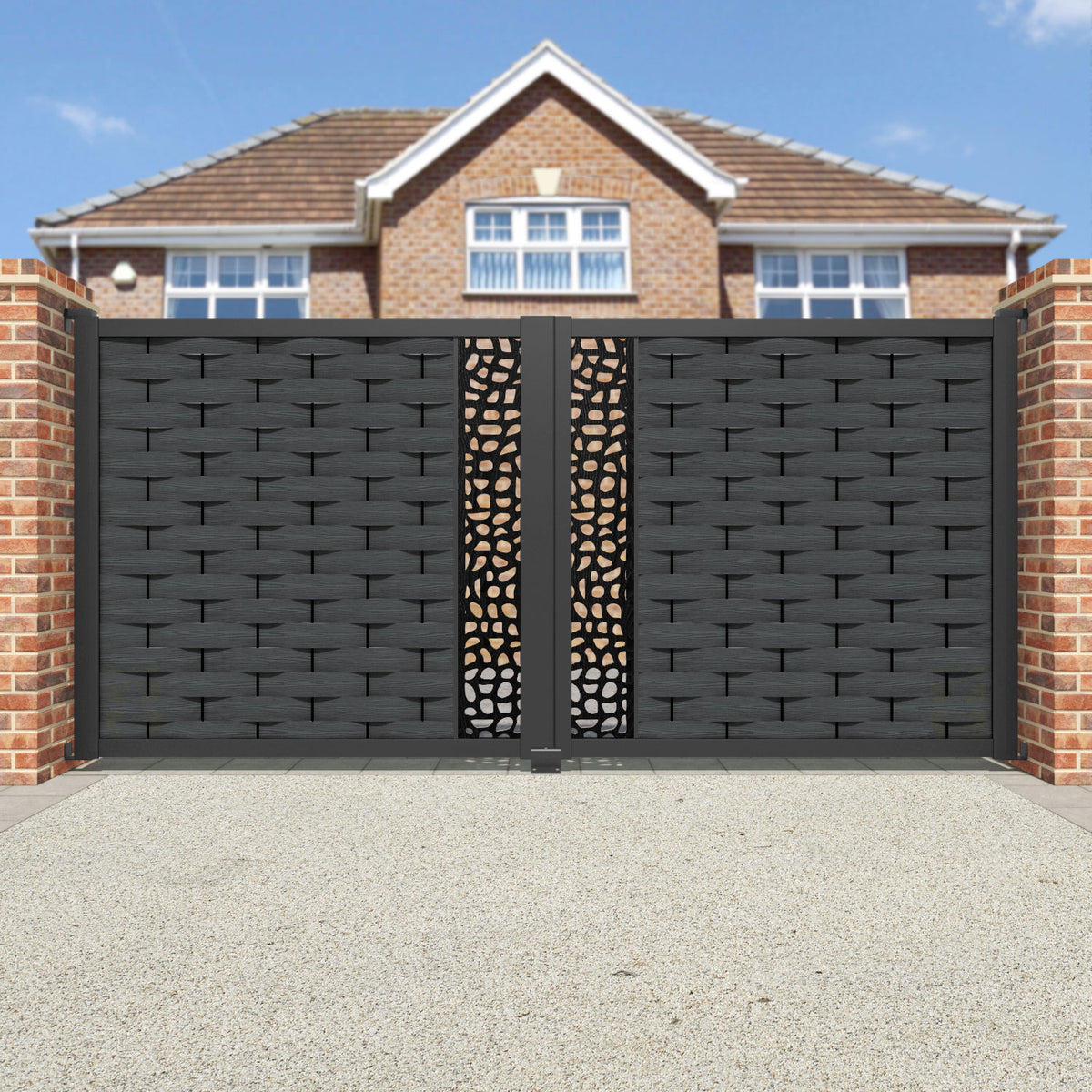 Ripple Pebble Straight Top Driveway Gate Dark Grey - Middle Screen