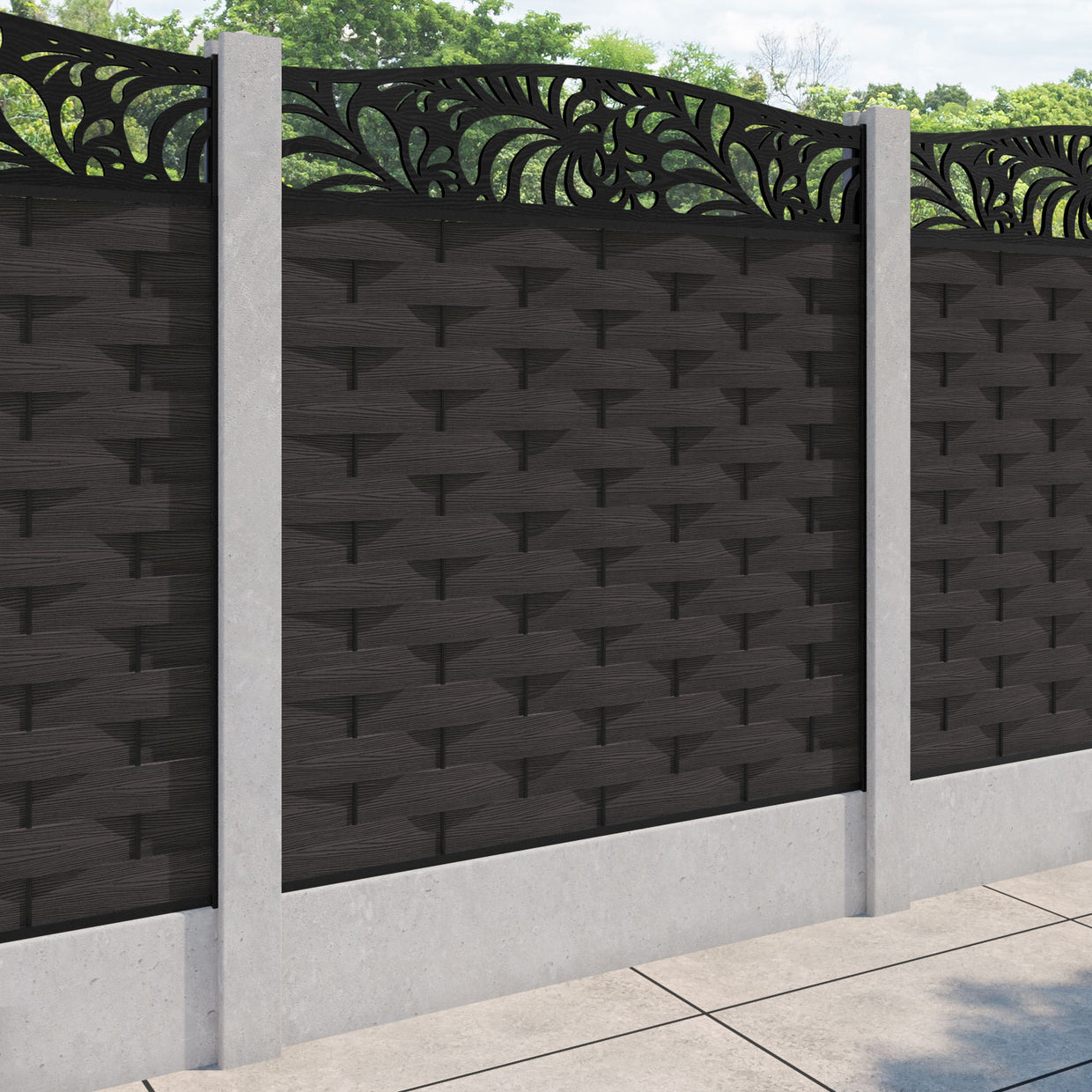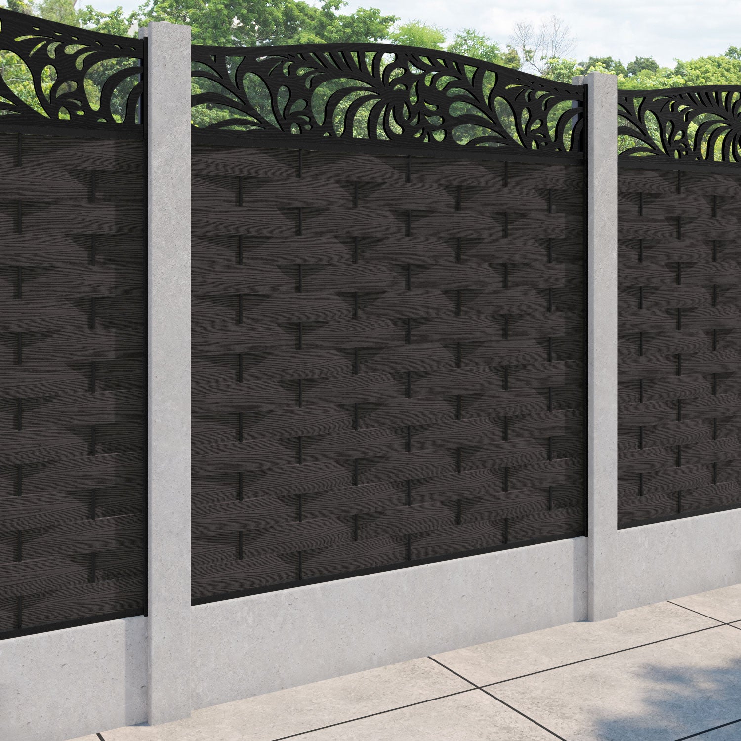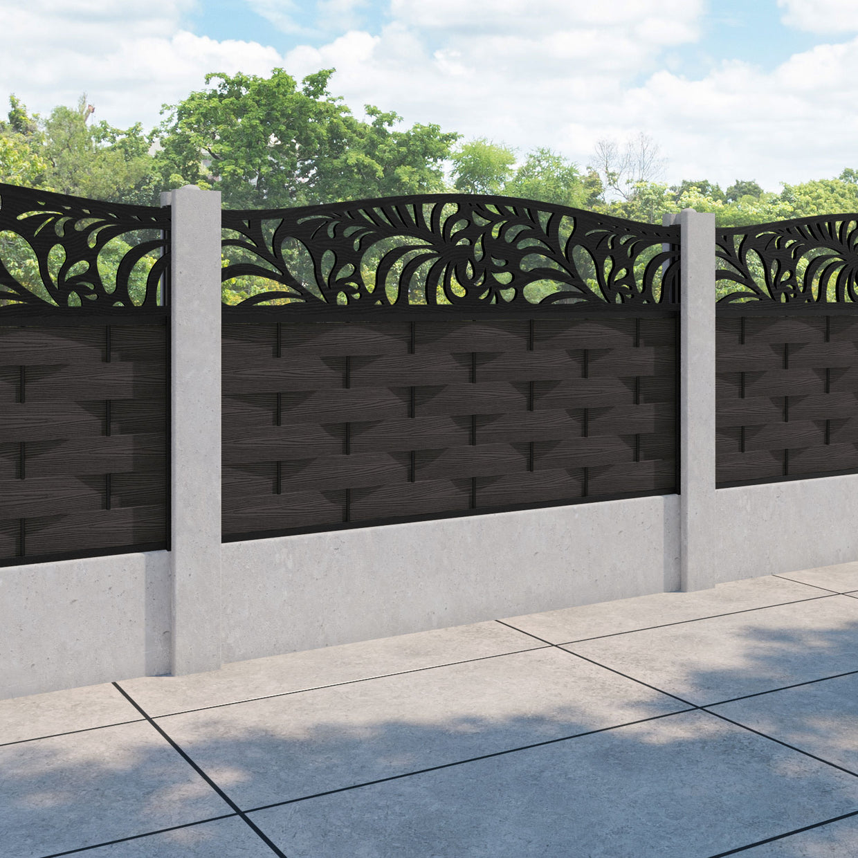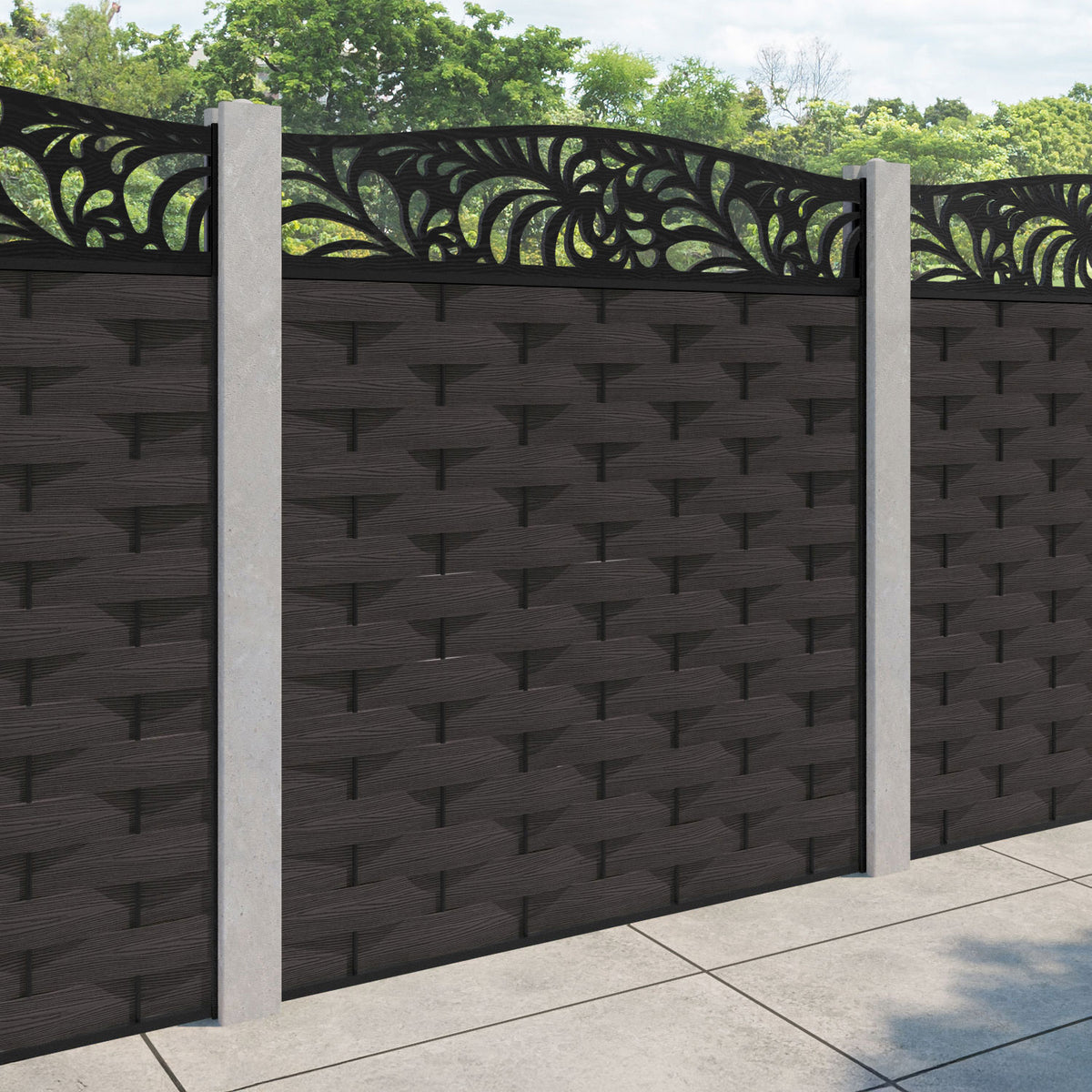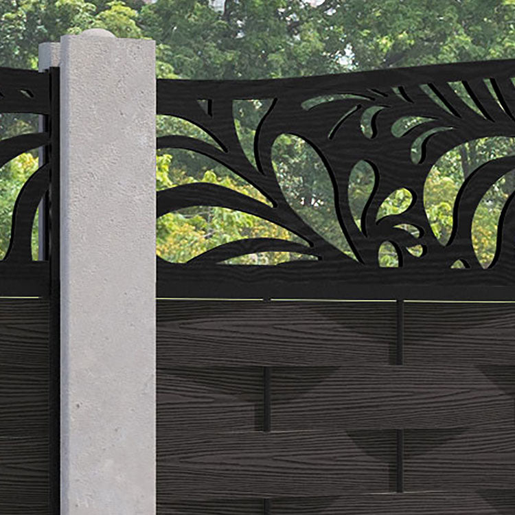 Ripple Petal Curved Top Fence Panel Dark Oak - for existing concrete posts