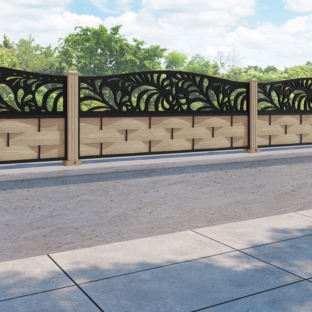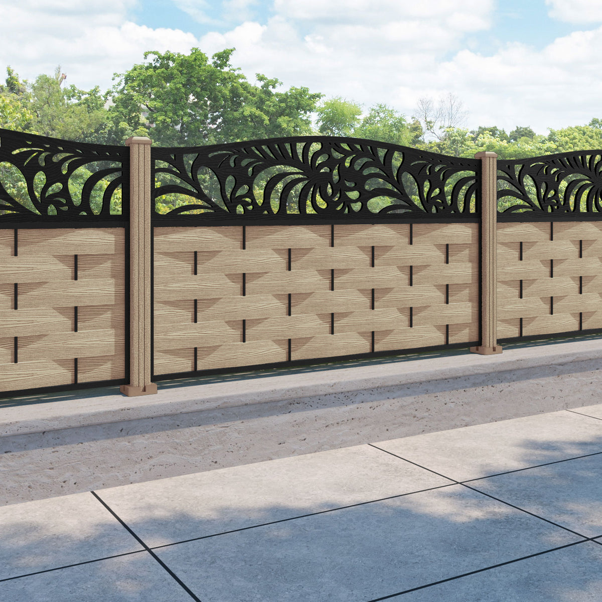 Ripple Petal Curved Top Fence Panel Light Oak - with our composite posts