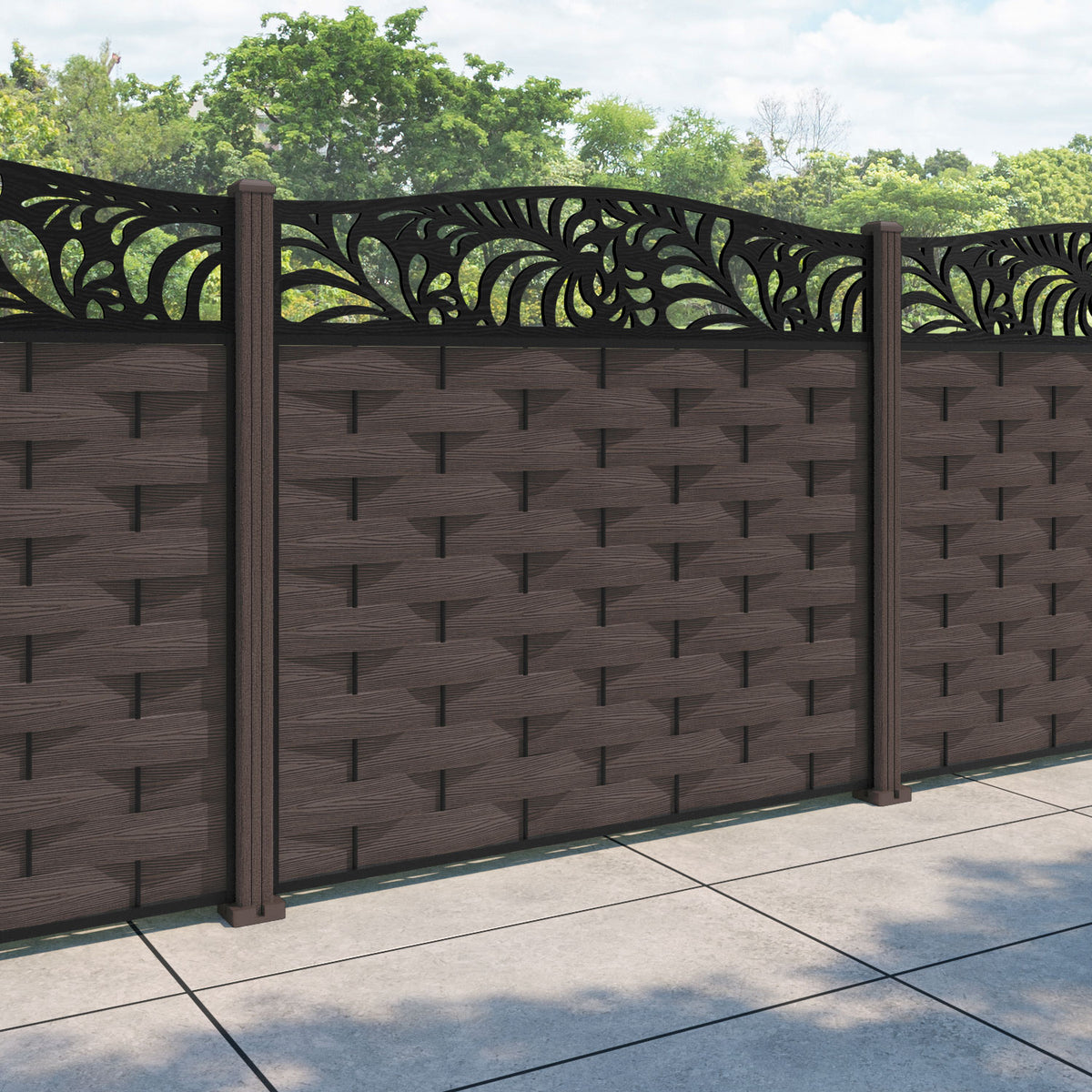 Ripple Petal Curved Top Fence Panel Mid Brown - with our composite posts