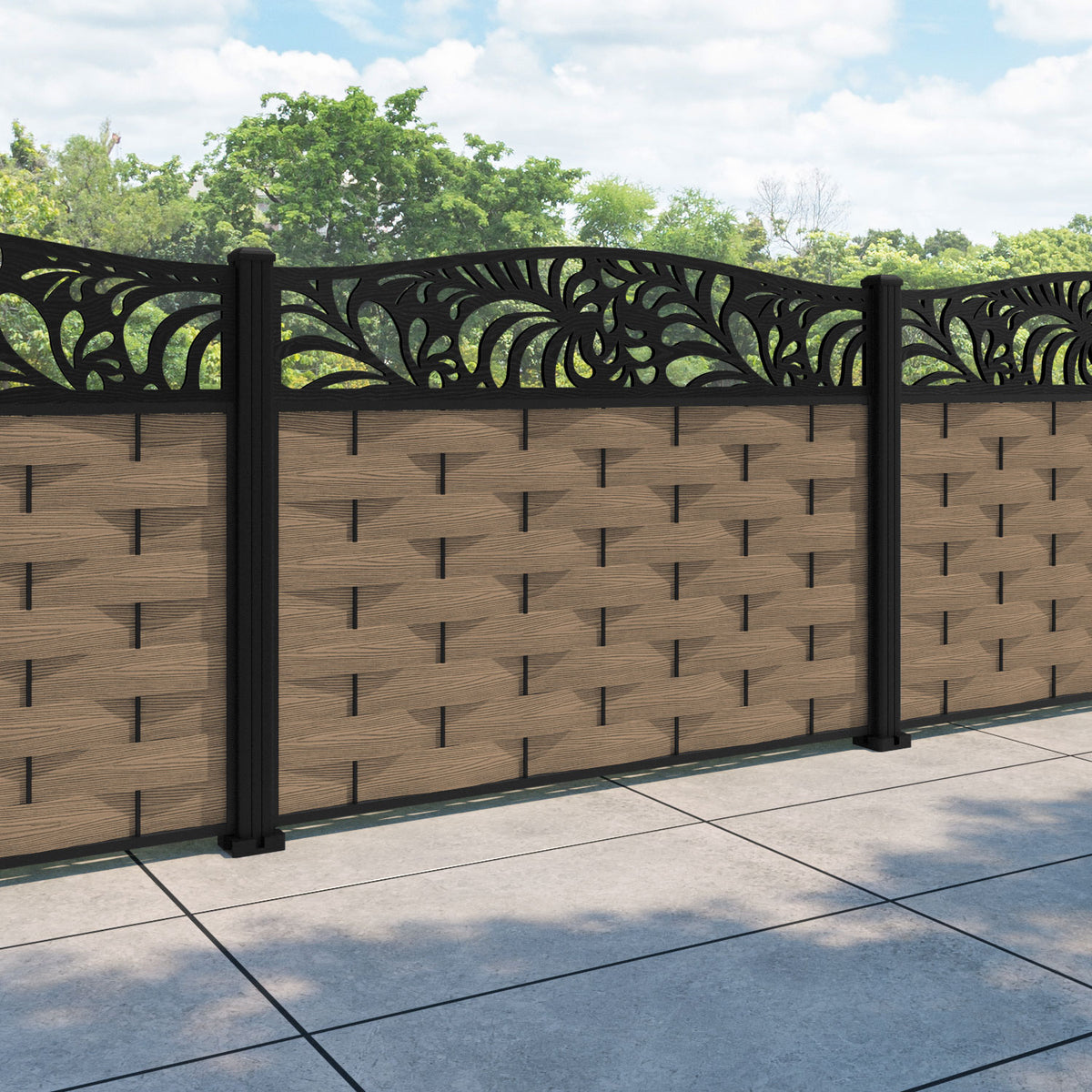 Ripple Petal Curved Top Fence Panel Teak - with our aluminium posts