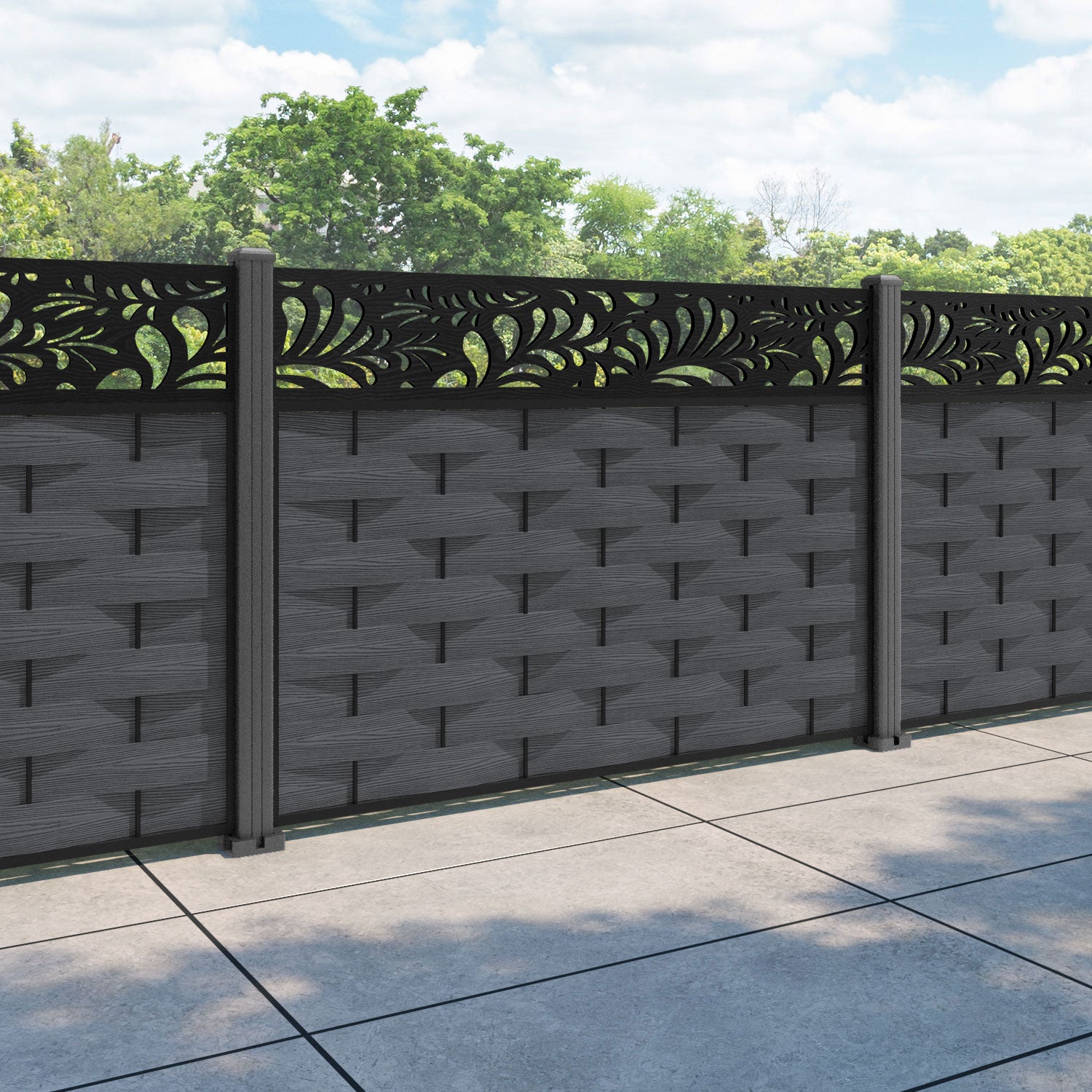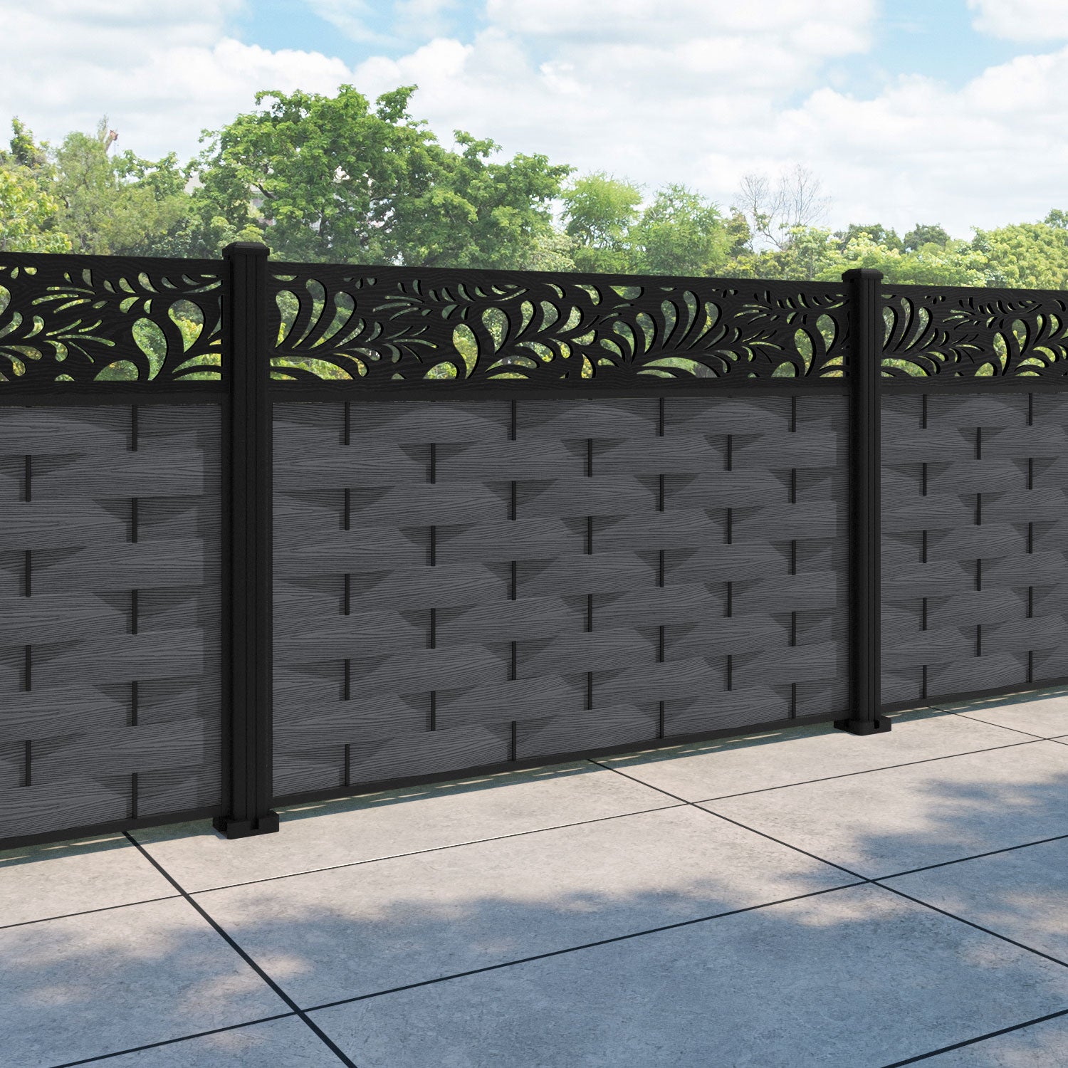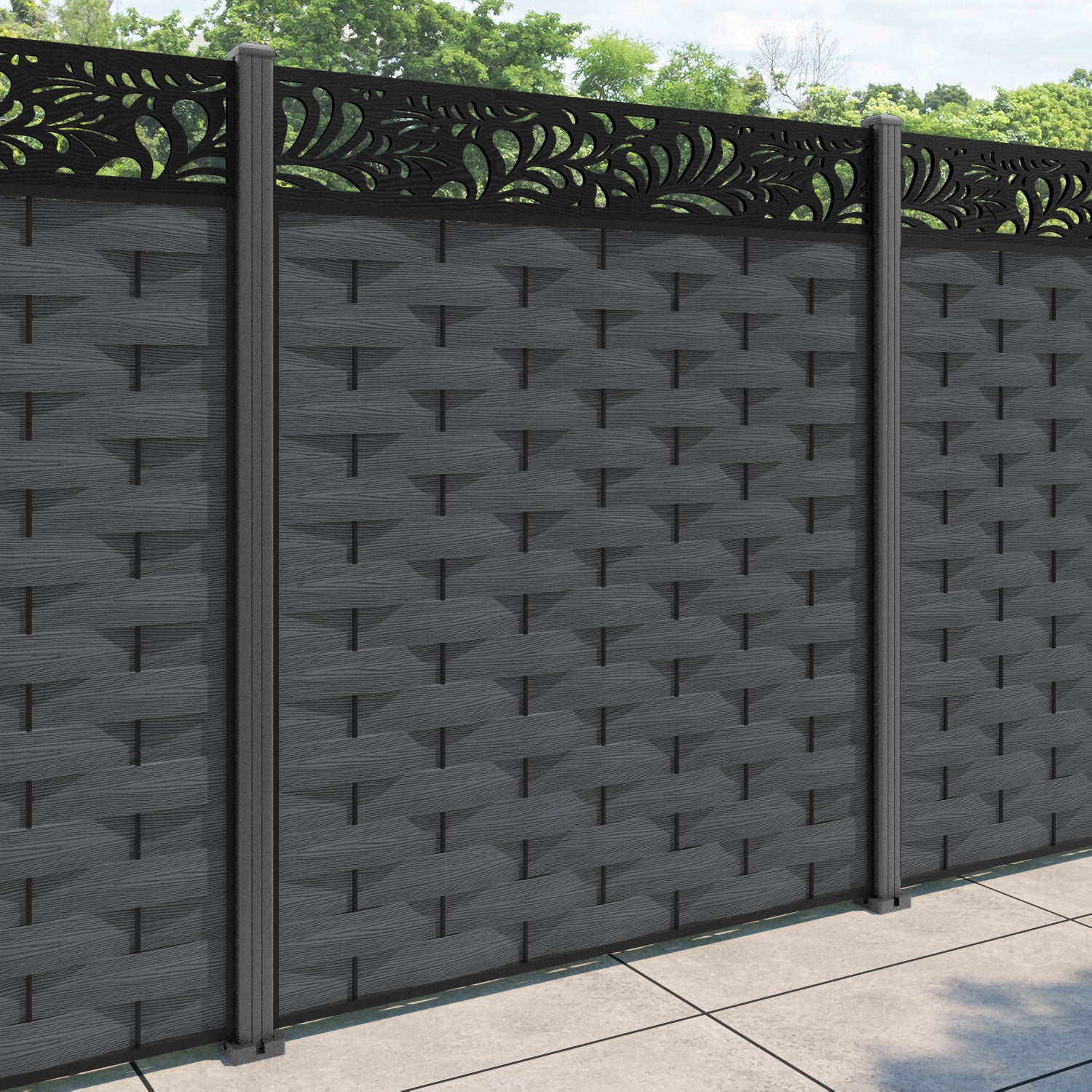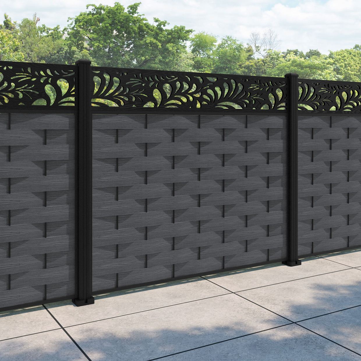 Ripple Petal Fence Panel Dark Grey - with our aluminium posts