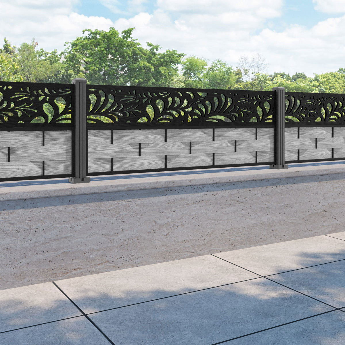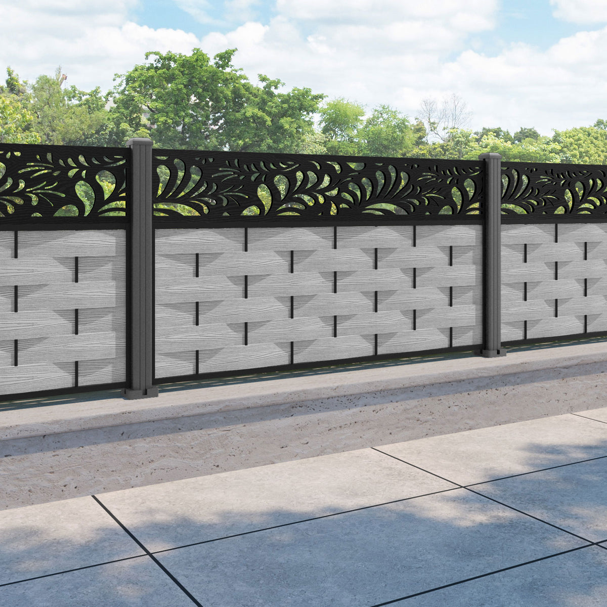Ripple Petal Fence Panel Light Grey - with our aluminium posts