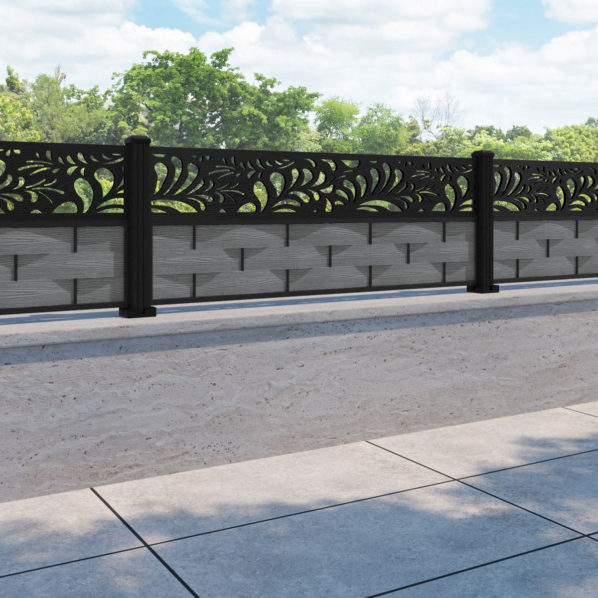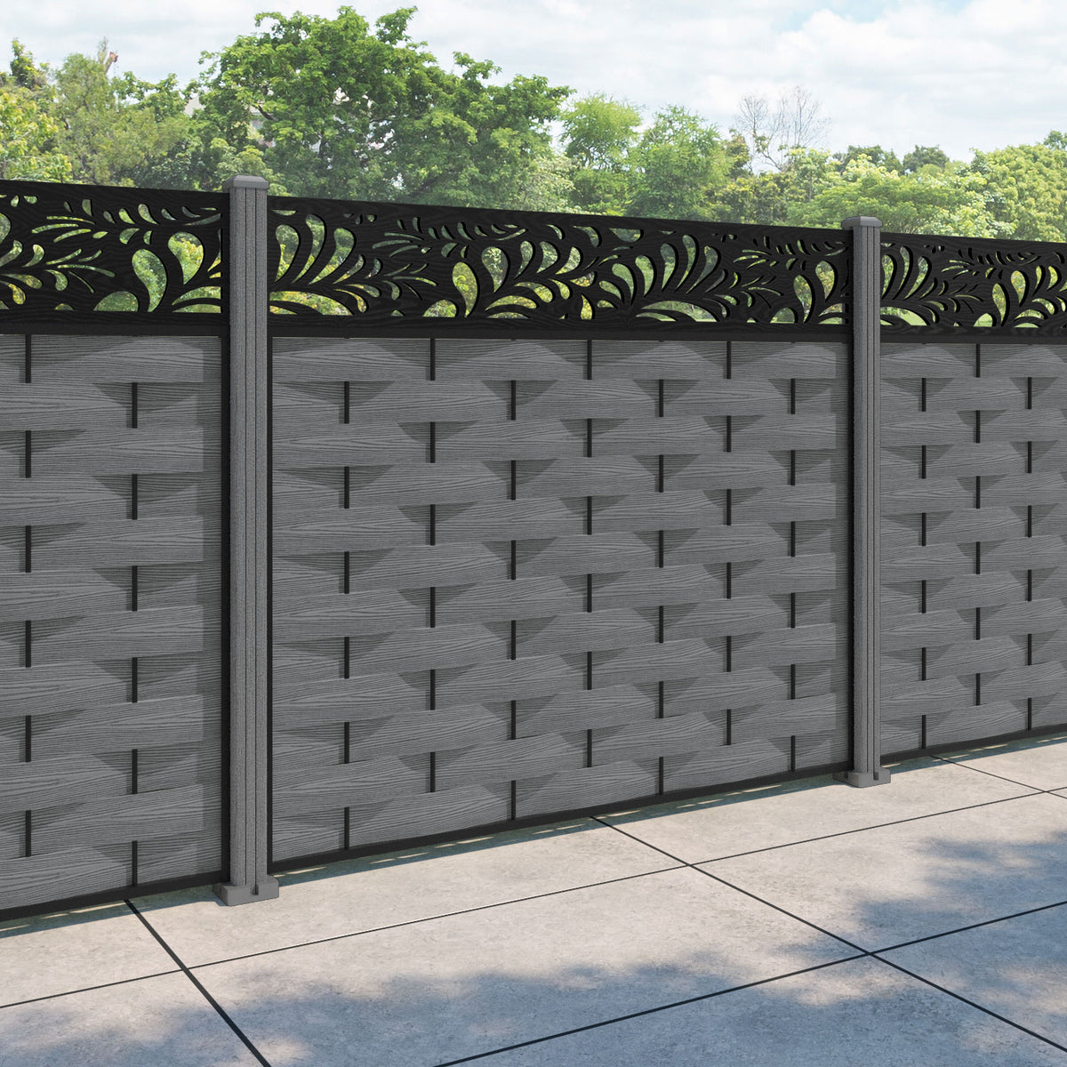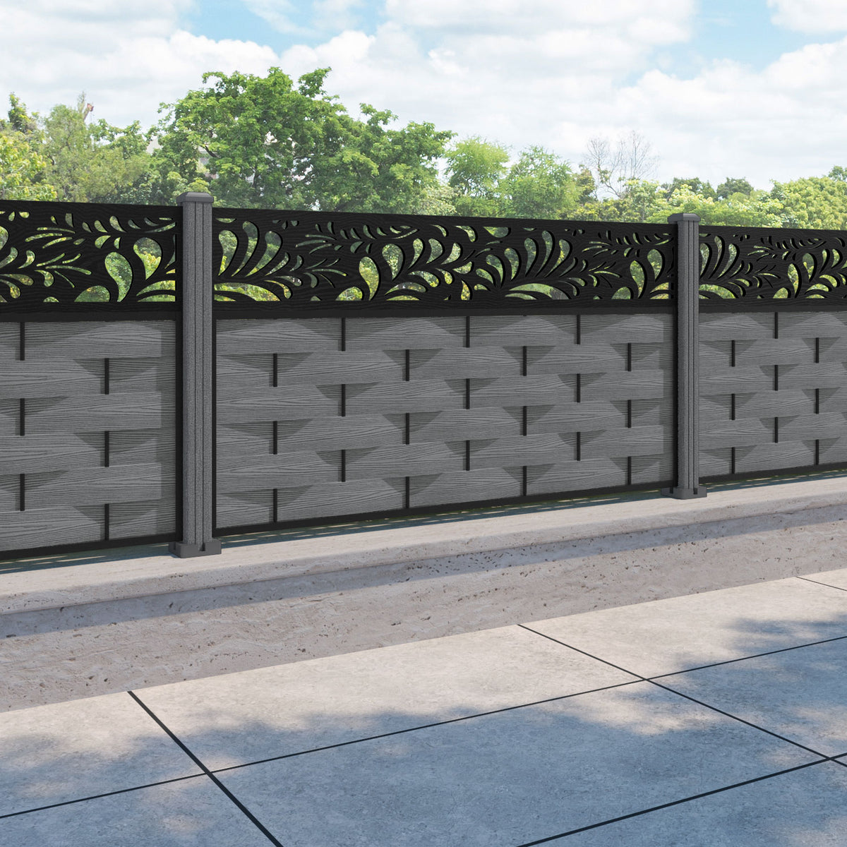 Ripple Petal Fence Panel Mid Grey - with our composite posts