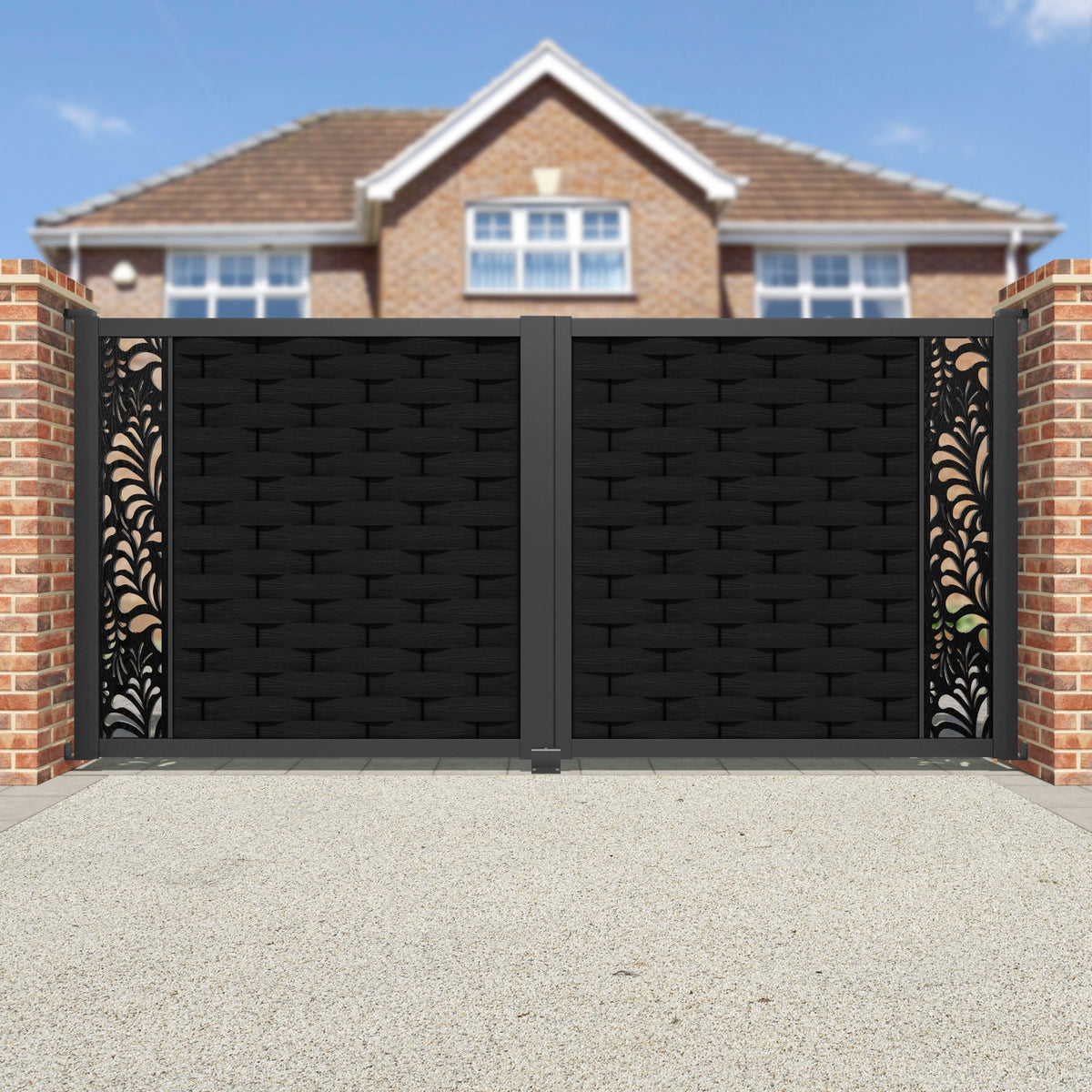 Ripple Petal Straight Top Driveway Gate Black - End Screen