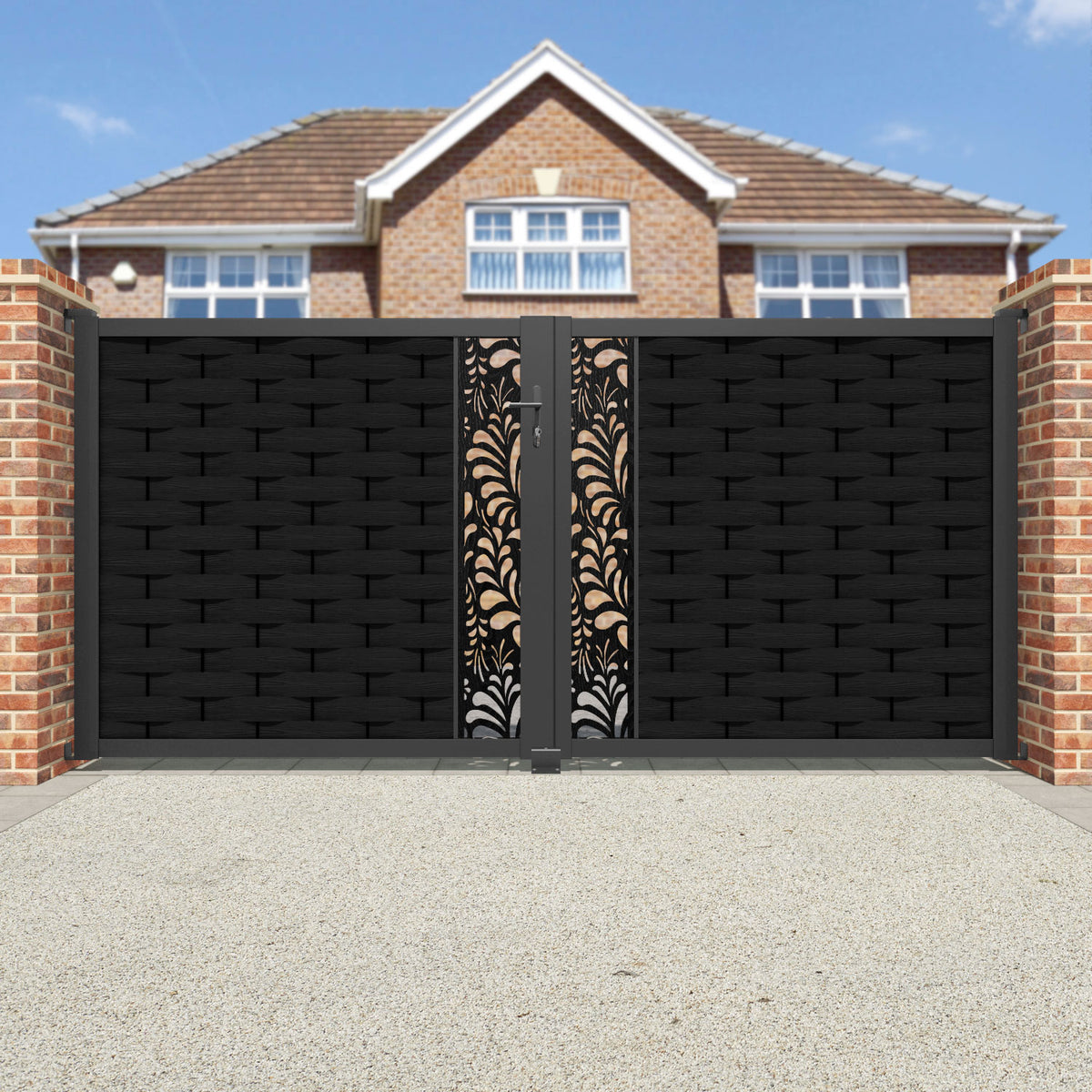 Ripple Petal Straight Top Driveway Gate Black - Middle Screen