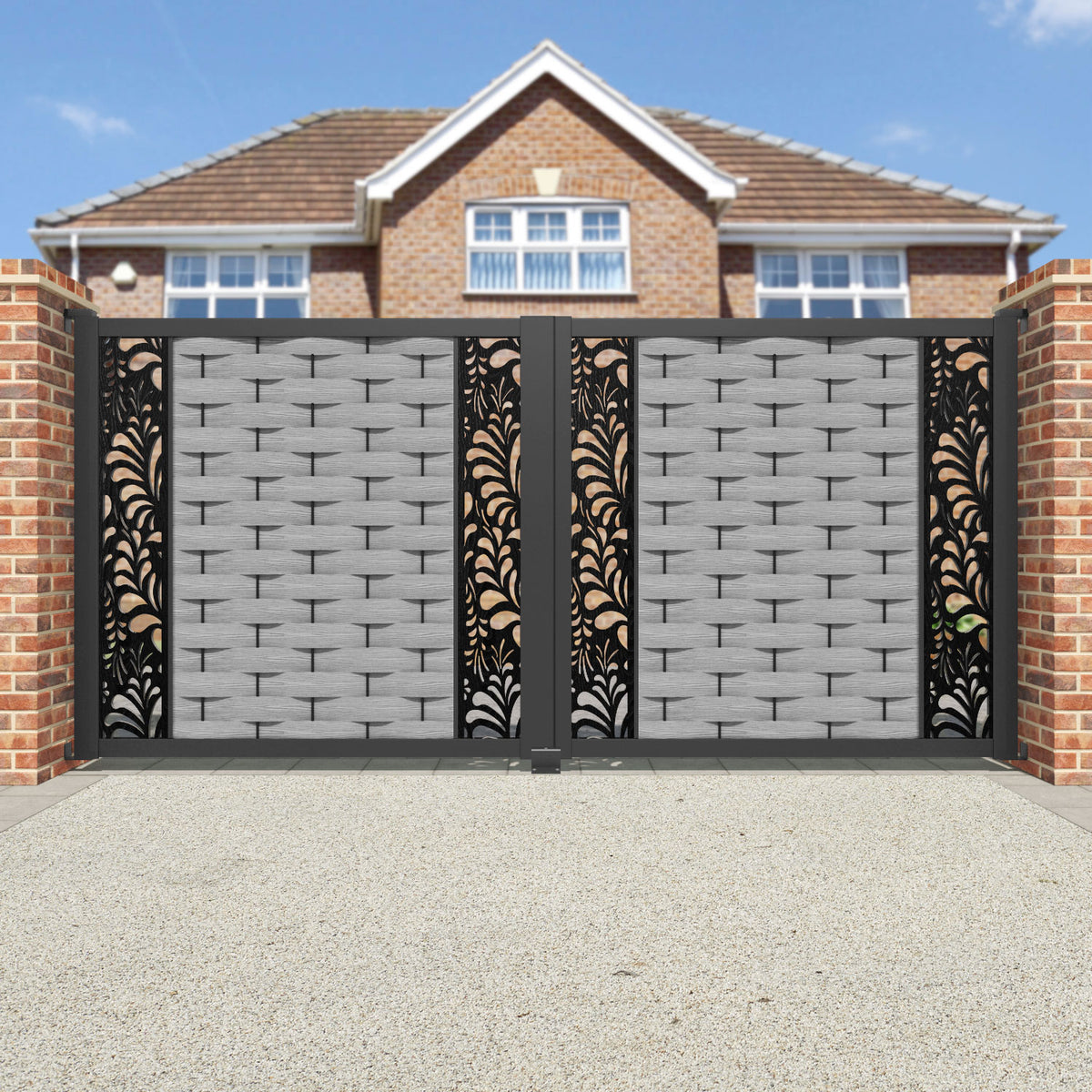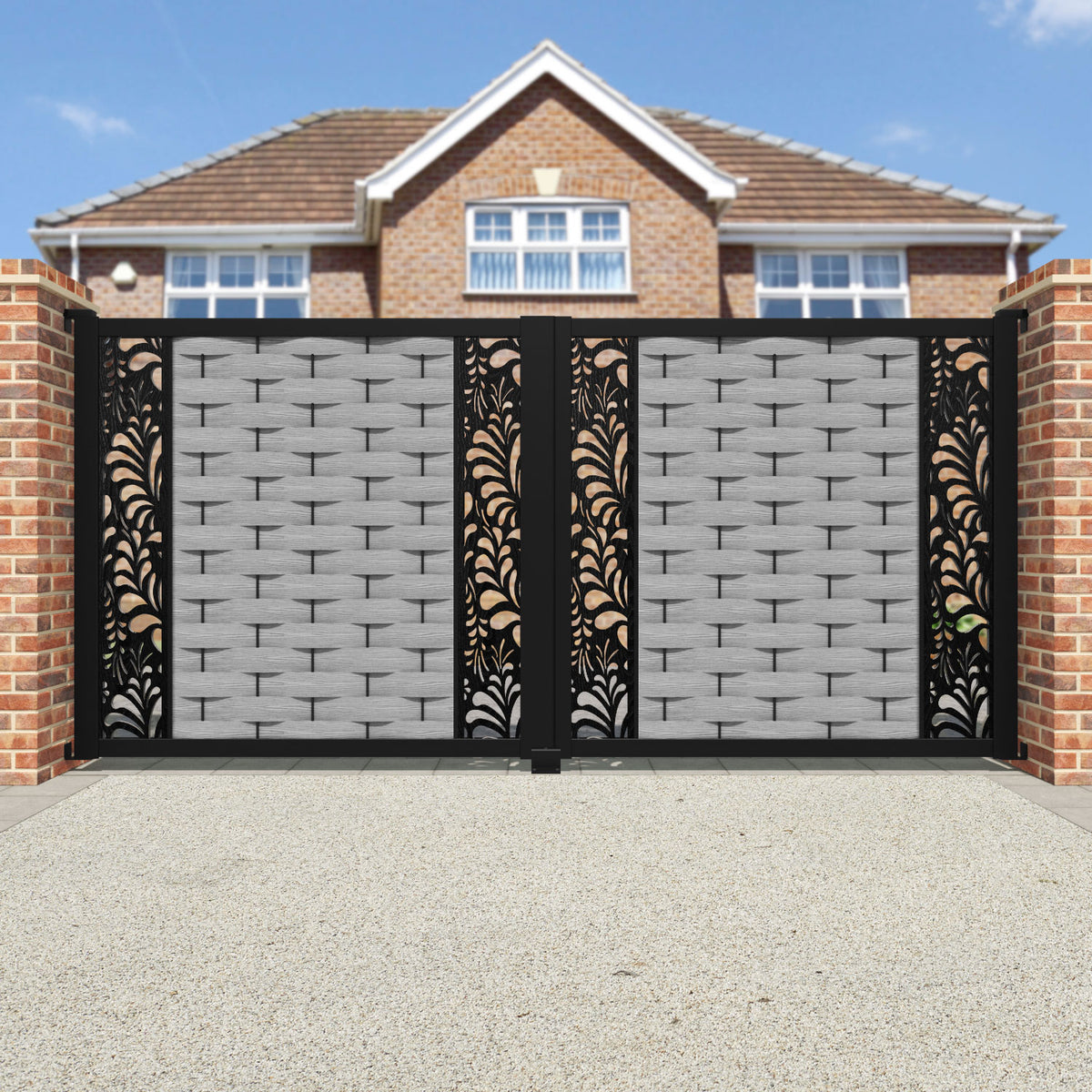 Ripple Petal Straight Top Driveway Gate Light Grey - Middle & End Screen
