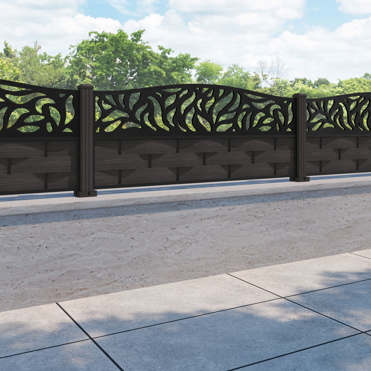 Ripple Plume Curved Top Fence Panel Dark Oak - with our composite posts