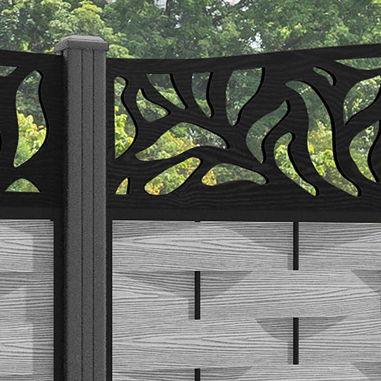 Ripple Plume Curved Top Fence Panel - Light Grey - with our aluminium posts