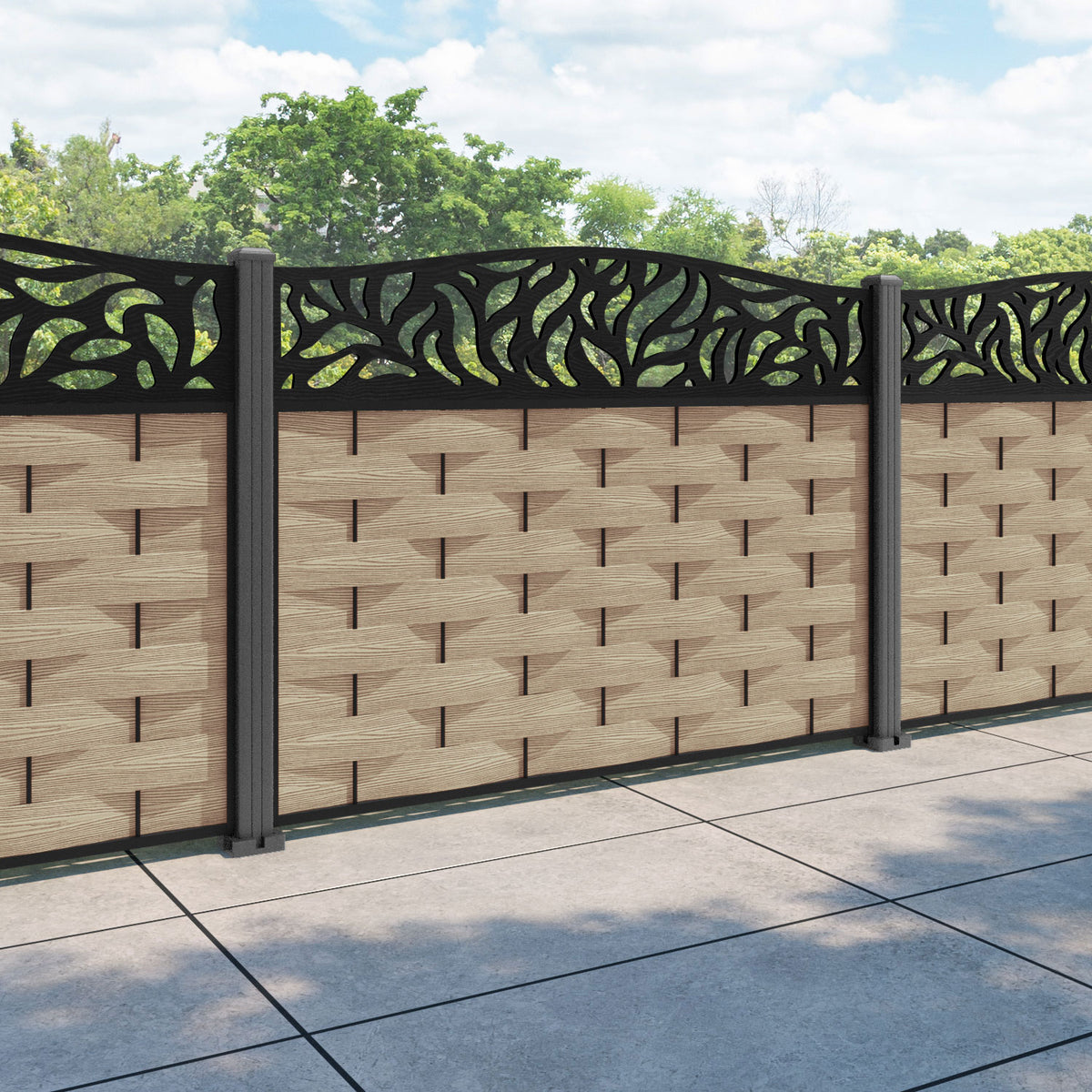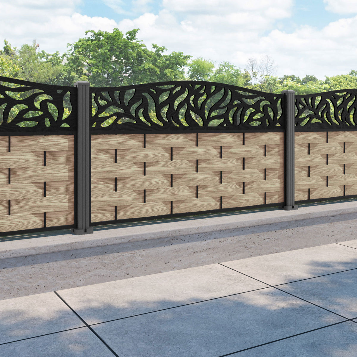 Ripple Plume Curved Top Fence Panel Light Oak - with our aluminium posts