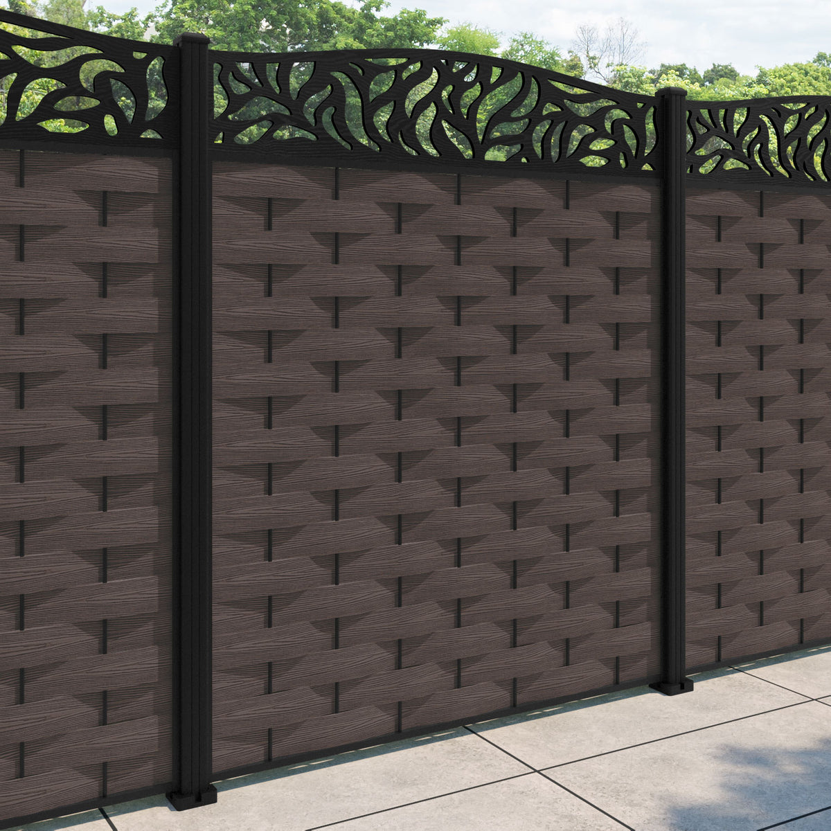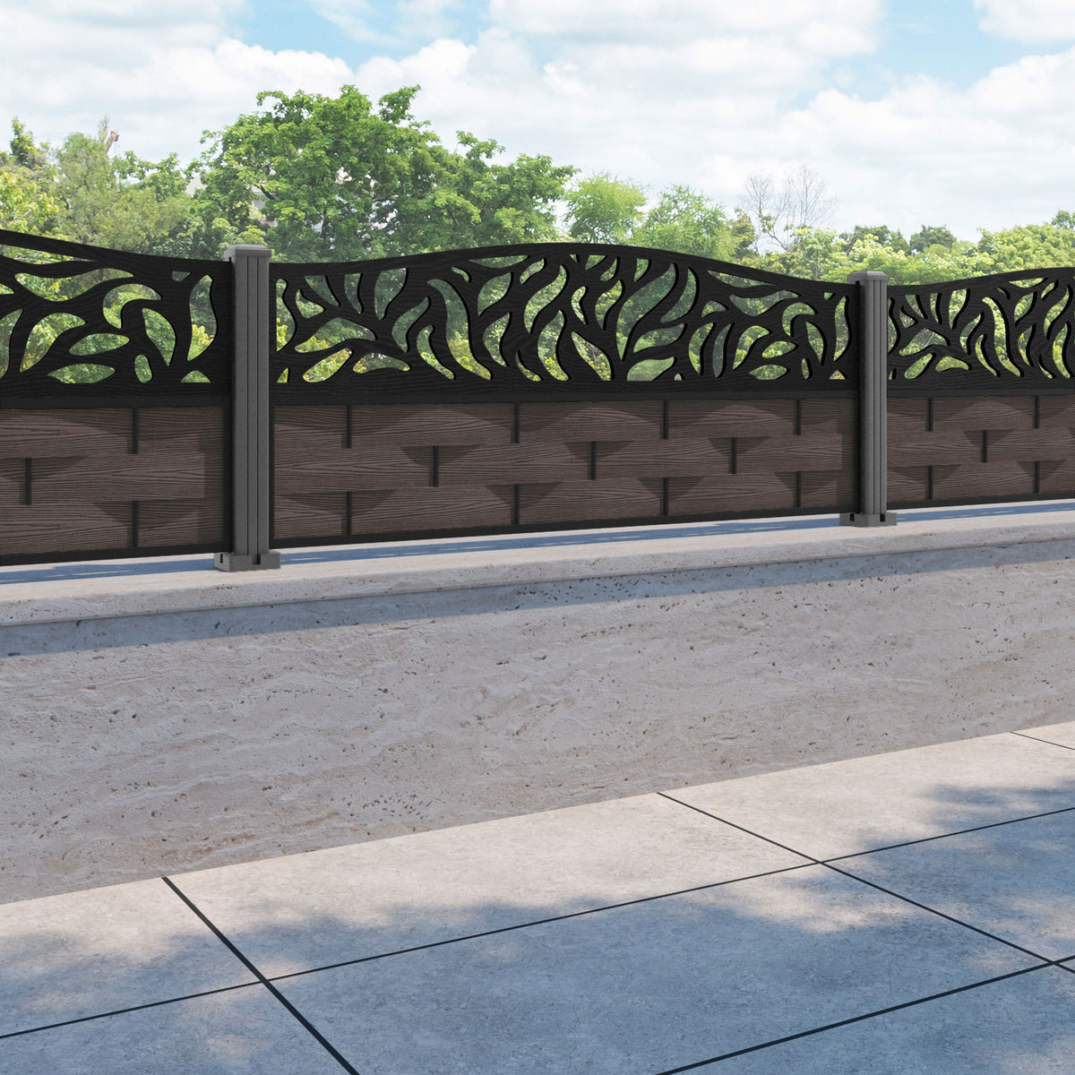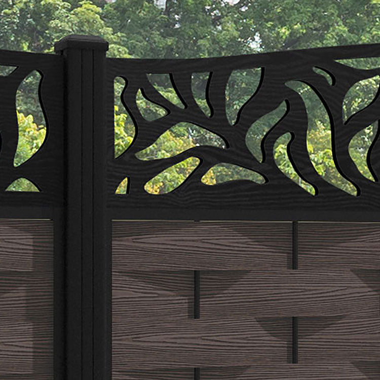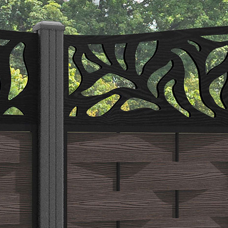 Ripple Plume Curved Top Fence Panel Mid Brown - with our aluminium posts