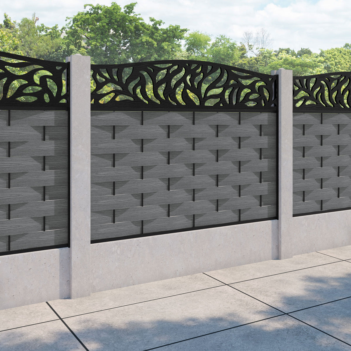Ripple Plume Curved Top Fence Panel Mid Grey - for existing concrete posts
