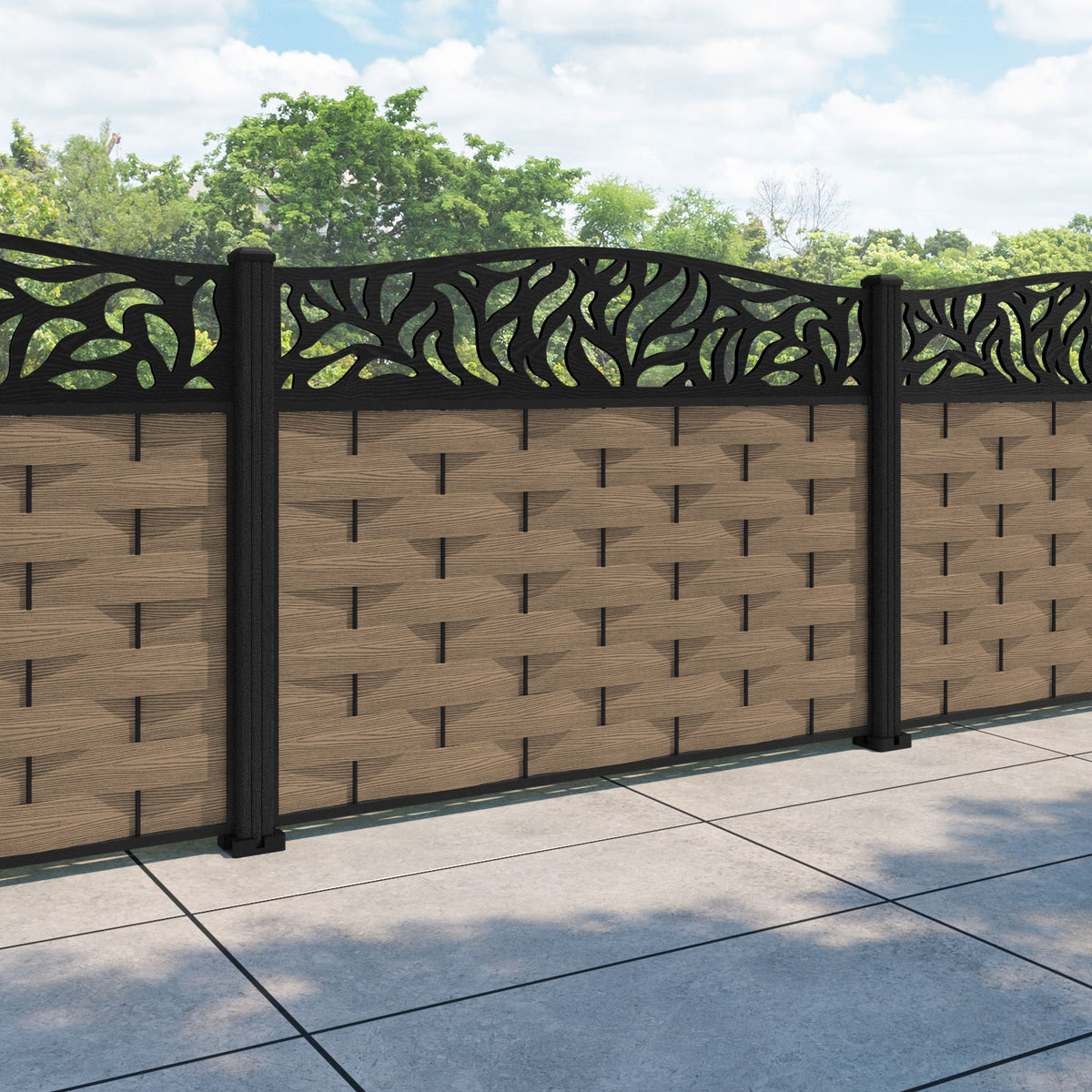 Ripple Plume Curved Top Fence Panel Teak - with our composite posts